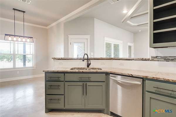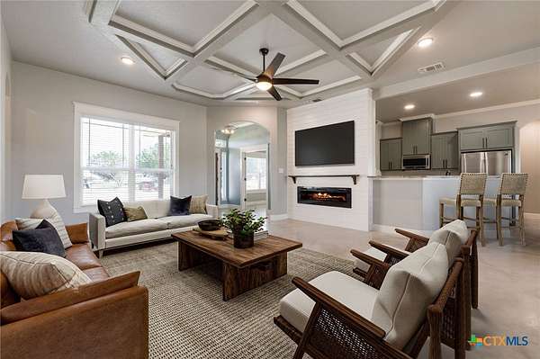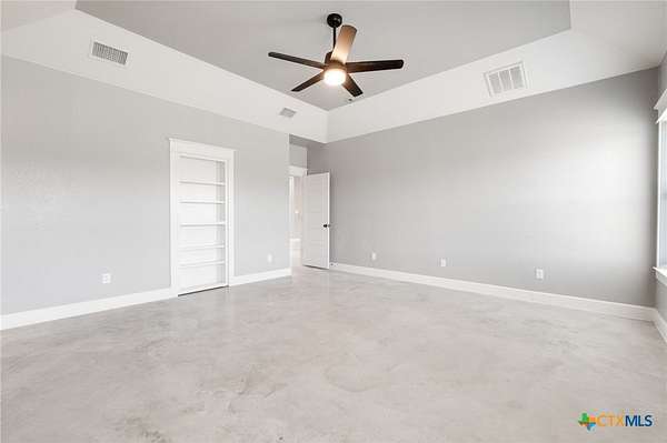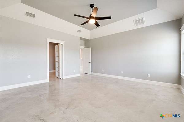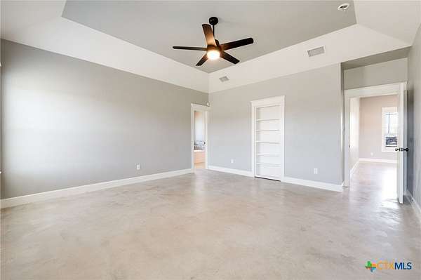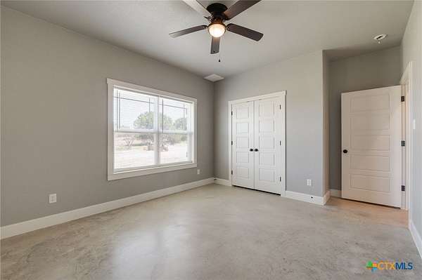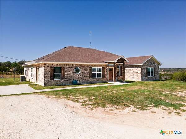 Experience country living at its finest in this 2019 Custom Built, 5 bedroom, 3 bathroom house on 7.64 unrestricted acres. Conveniently located just a few minutes from downtown Lampasas. This residence provides accommodations for large families, entertaining, multi-generational living and so much more. The mother-in-law design and open concept living provides flexibility in use. Storage was not overlooked with oversized closets and additional shelving in the separate laundry room. This home also offers the convenience of a dog washing station. A covered patio off the back of the house is ideal for enjoying the serene sunsets and admiring the hill country views. This is your opportunity to embrace a lifestyle of refined comfort and peaceful living.