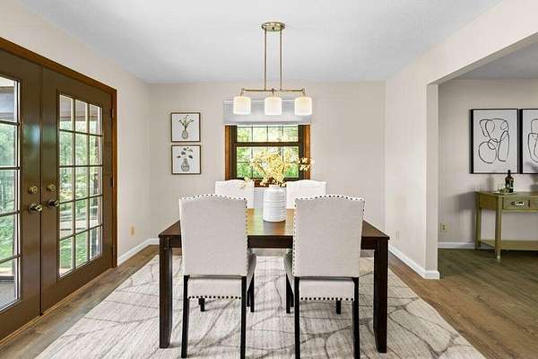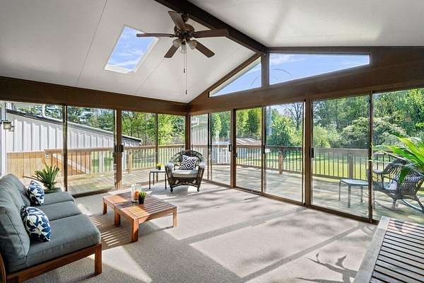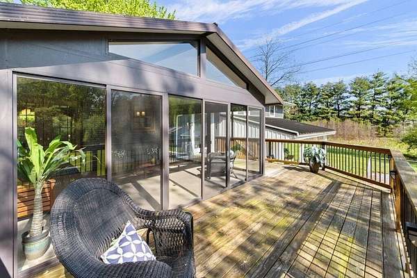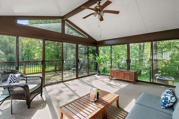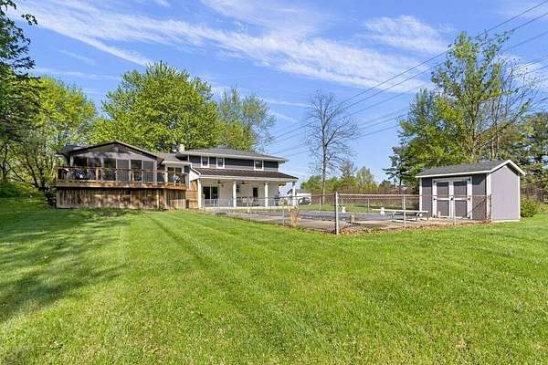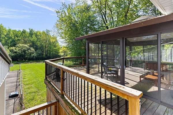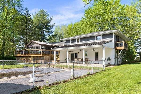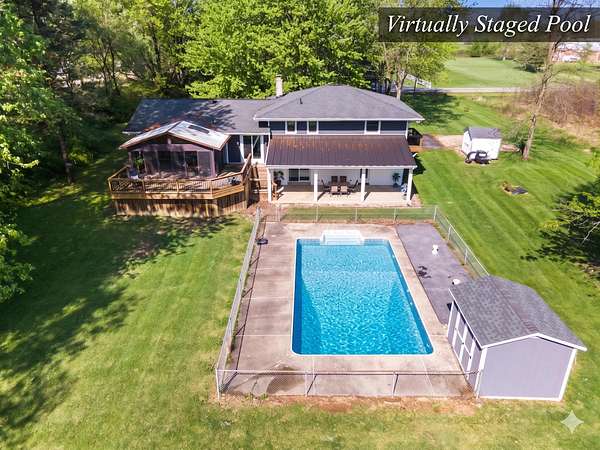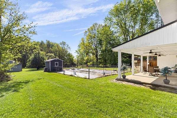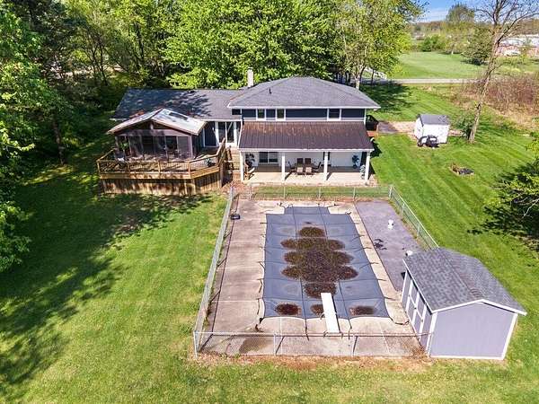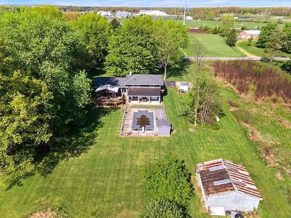 Rare opportunity in the NEW ALBANY school district!! Mini ranch retreat in New Albany set on 10+ private, wooded acres! This well-maintained split-level home offers the perfect blend of space, comfort, and outdoor living. Enjoy peaceful surroundings with mature trees, a scenic pond, storage sheds, and a heated in-ground pool--ideal for relaxing or entertaining. Inside, the home features a bright, open layout with a Living Room flowing into the Dining Room, an inviting Enclosed Back Patio, and a light-filled Kitchen. The spacious Owner's Suite includes a sitting area, private balcony, and updated full bath. Cozy Den with exposed brick wall and gas fireplace adds character and warmth. Outdoor living shines with both a charming front porch and a serene back patio. Propane is used for pool heating. Conveniently located just minutes from all that New Albany has to offer, including schools, parks, pickleball courts, golf at New Albany Links, shopping, dining, and the new community rec center currently under construction.