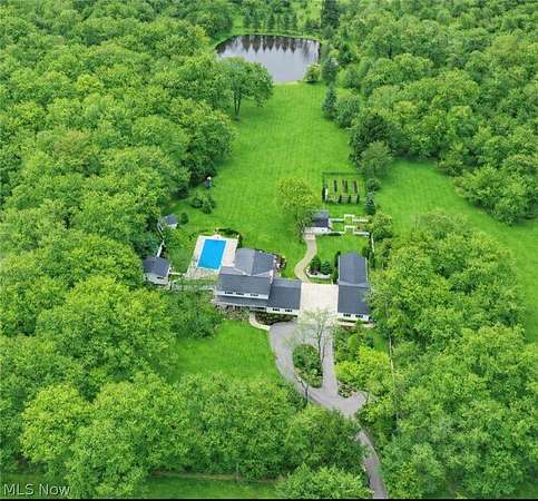 Set amidst over 5 acres of breathtaking, manicured grounds, this exceptional estate offers exquisitely designed living space, where timeless elegance meets unmatched tranquility. The five-bedroom, four and a half bath residence with walk-out lower level is surrounded by picturesque scenery, and a gated turnaround driveway, creating a private retreat defined by beauty, serenity, and refined luxury. A charming one bedroom carriage house with a full bath and private patio provides an ideal guest residence, while six-car garage capacity offers both convenience and prestige. Resort-inspired outdoor living takes center stage with a stunning in-ground saltwater pool, elegant pool house, tranquil pond, fire pit, lush gardens, barn, shed, and impeccably curated landscaping that transforms every view into a work of art. A whole-home generator adds seamless peace of mind.