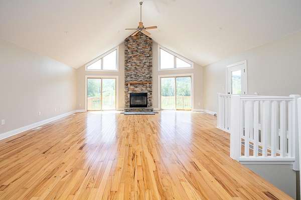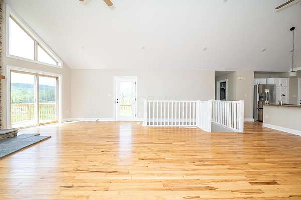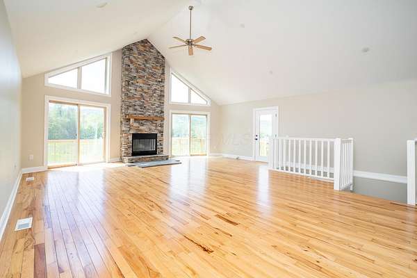 Serene Country Living on 25 Acres! Welcome to your private retreat in the heart of nature! This beautiful one-story home sits on a sprawling 25-acre property, offering a perfect blend of open living and peaceful seclusion. Featuring 3 bedrooms and 2 full baths, this thoughtfully designed home has an open floor plan that seamlessly connects the kitchen, dining, and living areas-ideal for both everyday living and entertaining. Enjoy a wood-burning fireplace, framed by large windows and glass doors that flood the space with natural light and lead out to a walk-out deck with scenic views. The high ceilings enhance the sense of space and bring in the outdoors. The primary suite is privately situated on one side of the home, complete with ample closet space and a serene en-suite bath. Two additional bedrooms and another full bath are located on the opposite side, offering comfort and privacy for family or guests. Need extra space? A spacious basement provides endless possibilities for storage, a workshop, or future finished living areas. The attached 2-car garage adds everyday convenience. Outdoors, explore your own slice of nature with some wooded acreage and a meandering stream, perfect for quiet walks, wildlife watching, or simply unwinding. Whether you're looking for a homestead, a weekend getaway, or a peaceful place to call home, this property has it all. Don't miss this rare opportunity to own a slice of Ohio countryside with modern comforts and timeless beauty. The correct sq. ft. is 1860. Seller is a licensed Real Estate Agent in the State of Ohio.