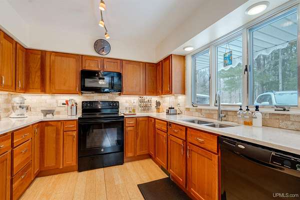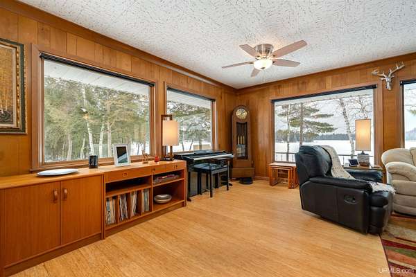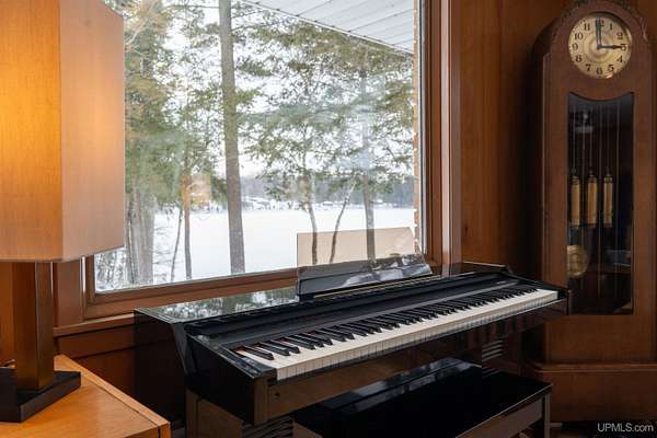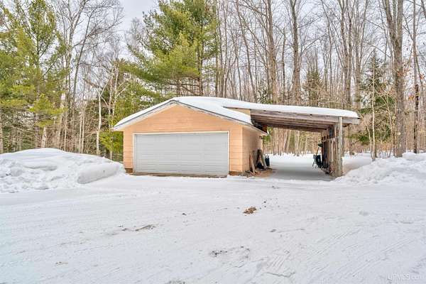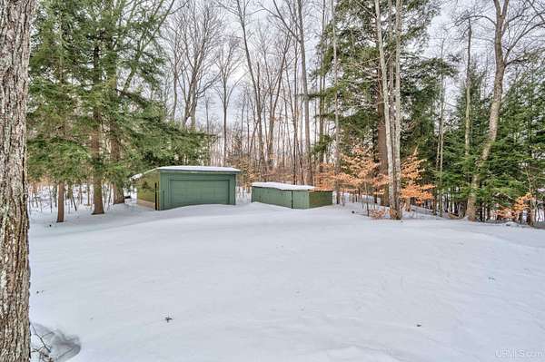 Set on 8.9 private acres with an extraordinary 467' of frontage on 105-acre Island Lake, this home offers a rare level of seclusion and natural beauty seldom found in today’s market. Positioned on the desirable east end of the lake, the property captures breathtaking west-facing sunsets across pristine waters that reach depths of approximately 60 feet and connect by channel to Dodge Lake — providing access to two exceptional inland lakes. The 2,492 sq ft residence has been meticulously maintained and thoughtfully updated, blending comfort with timeless Northwoods character. The kitchen is fully renovated with rich cherry cabinetry, granite countertops, and a tile backsplash, opening into bright living and dining spaces framed by expansive lake-facing windows. An impressive addition includes a generous bedroom suite, custom tile shower bath, laundry area, partial basement, and a large den — creating flexible living space ideal for guests or extended stays. Mature hardwoods provide privacy throughout the property, while evergreen shoreline plantings frame the water’s edge. Two detached garages offer abundant storage for vehicles, watercraft, and recreational equipment. A large, insulated workshop stores your tools and gives you lots of workspace. Propane forced-air heat, electric baseboard backup, and a durable metal roof ensure four-season comfort and peace of mind. Located just 15 minutes from Manistique, and surrounded by thousands of acres of public land, trails, lakes, and streams, this property delivers a true Upper Peninsula lifestyle — private, refined, and connected to nature. A rare opportunity for those seeking space, water, and enduring value in Michigan’s Northwoods.