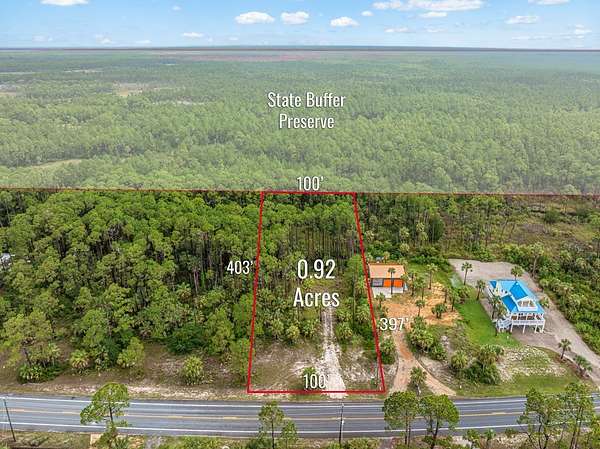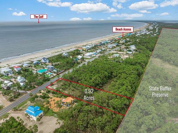 Great location, 2nd tier to the beach, this oversized lot would be an ideal spot for your dream beach house. Measuring approximately 100' wide and over 0.9 acres of total land, this property also backs up to the state-owned buffer preserve property which will ensure privacy, wildlife viewing, and natural surrounding on the north side. A public beach access point is a short walk to the west, where you can also drive a permitted golf cart or vehicle on the beach with your gear. Conveniently located right between Indian Pass and Cape San Blas, this stretch of CR 30-A is low-density with wide and unspoiled beaches. It's also an easy 15-20 minute drive in opposite directions to the charming coastal towns of Apalachicola or Port St. Joe, and of course the Indian Pass Raw Bar is walking distance away. The lot has been previously cleared around the palm trees with some added fill dirt and partial driveway. Enjoy all that this special area has to offer with nearby boat ramps, great fishing, boating, shelling, and pet-friendly beaches. Sellers also have engineered houseplans for this property in case you want a head start on the building process!