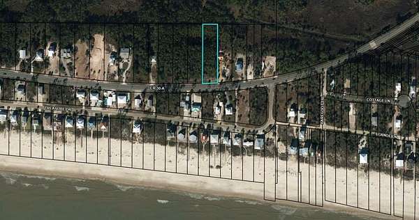 Located on the north side of CR 30-A close to the Indian Pass turnoff, lot 19 is near the eastern end of the Treasure Shores neighborhood, just before Barefoot Trail and Cottages at Indian Summer. Sign on property
