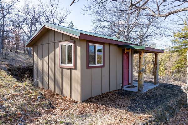 The Ultimate 155-Acre Sportsman's Paradise: Rustic Chic Cabin Retreat with Iconic Mt. Hood Views! Escape the ordinary and step into your very own private wilderness. Nestled on 155 acres of remarkably unique topography, this extraordinary property is a rare blend of rugged adventure and cozy, rustic comfort. Whether you are an avid outdoorsman, a homesteader, or simply seeking a tranquil retreat, this sprawling estate offers the ultimate opportunity to fish, hunt, explore, and relax on your own land. At the heart of the property sits a stunning 2-bedroom, 1-bathroom cozy cabin boasting authentic Lodgepole accents. The open great room is anchored by a wood stove, with wood and marmoleum floors. In addition to the wood stove there is a mini split to ensure climate comfort year round. The vaulted tongue and groove ceiling, lodge pole stairway and railing give the feeling of a woodland chalet. The bathroom has a tile walk in shower. Plenty of hot water with the electric on demand hot water heater! Upstairs the loft has room for plenty of guests or a hang out area. Even more guests? No problem the Bunk House features 2 queen size bunk beds and an outhouse! Water is life, and this property is teeming with it. The diverse, 155-acre landscape transitions beautifully from a flat pasture to rugged rangeland. Threemile creek meanders directly through the property, providing a serene soundtrack to your daily life. The 2 acre+/- pond is fully yours to enjoy, perfect for a peaceful afternoon of fishing. The pond stores water for the 37 acres of water rights that the property has. Explore your own private piece of history with a fascinating old rock quarry located right on the grounds, unique rock formations alongside Threemile Creek make for a truly one of a kind setting! The property qualifies for 2 Landowner Preference Tags, and has a Treehouse/Deer Stand, giving hunters the perfect vantage point for hunting or simply watching the local wildlife roam.
