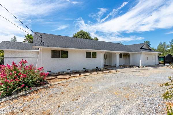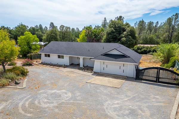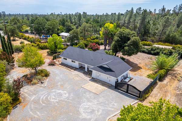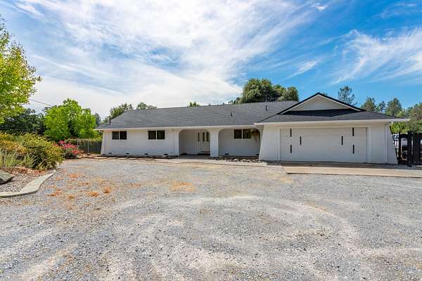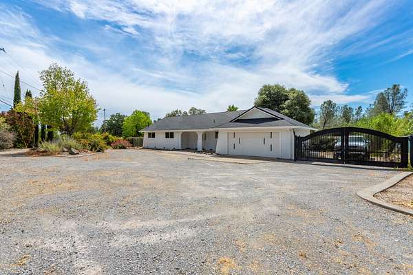 Opportunity meets charm on this fully fenced 2.35-acre home with tons of potential to make it yours and is in the Grant School District. There are miles of Horseback Riding Trails, Hiking and Mt. Biking Trails right from your front door! Just Minutes from town and close to Whiskeytown Lake!! This 3-bedroom, 2-bath home features a new roof, a finished garage, and the most spectacular custom front gate that makes a grand first impression. Enjoy cement patios and walkways, established gardens, fruit trees, chicken coops, out buildings, a covered carport with plenty of room for a shop, pool, or a horse? The kitchen and flooring are not in place and ready for your personal touch, and a HVAC/or Minisplit system will be needed. With the solid improvements already in place, this property is a fantastic opportunity to create your dream home in a serene, spacious setting.