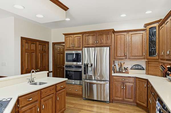 Thoughtfully placed on over four acres, with mature native growth alongside strategically cultivated trees and flowering landscaping, surrounded by similar estates, this property provides a retreat for all ages. Multiple decks and patios, both open and enclosed, a beckoning 30,000gal lap pool with unfinished pool house, a multi-level tree house, and fenced area offer private outdoor recreational enjoyment year-round. The grand foyer presents guests immediately with an unrestricted and flowing floor plan and more attributes than can be listed here. Warm oak, classic ceramic, and textured carpet floors carry feet through expansive and cultured rooms with soaring ceilings, Pella windows and doors, gourmet and high-end fixtures, automated skylights, masonry fireplaces, shelf-lines walls, walk-in closets, and sequestered living spaces. From the formal dining room to the cozy hearth area resting between the open kitchen and breakfast room, an ease of living is observed. Contrarily, the finished walk-out basement and attic areas offer nearly independent additional living and working spaces, some of which have potential for alternative future purposes. This estate presents casual sophistication, solitude and accessibility, in close proximity to a golf course, conservation club, winery, event venue, shopping, schools, and much more. Don't miss this opportunity to fall in love!