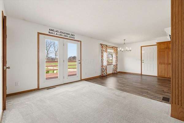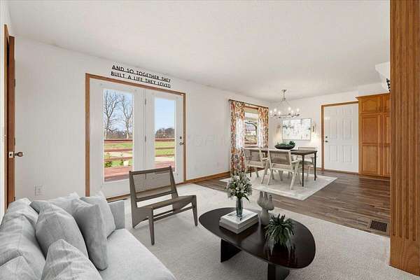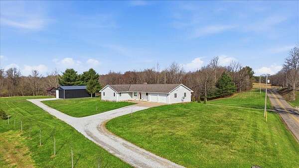 Discover your dream home on 10 stunning acres in the sought-after Centerburg Local School District! This spacious ranch, built in 1997, offers 4 bedrooms and 3 full bathrooms thoughtfully designed across two levels, providing flexibility, privacy, and room to spread out. Car enthusiasts and hobbyists will love the 4+ enclosed garage spaces, featuring 2 on the main level and 2+ in the finished lower level. Enjoy year-round comfort with central air, propane heat, and a cozy wood-burning furnace plumbed directly into the ductwork. The lower-level walkout is ideal for a mother-in-law suite, complete with a bedroom, full bath, and kitchenette, perfect for extended family or guests. Outside, the 10-acre setting offers endless possibilities, featuring a 40x30 pole barn with concrete floor and electric, mature trees, and open green space. Additional highlights include new HVAC in 2025, three washer hookups and two dryer hookups, and a convenient location just off State Route 3 between Mount Vernon and Centerburg. Consolidated Electric with high-speed internet available.