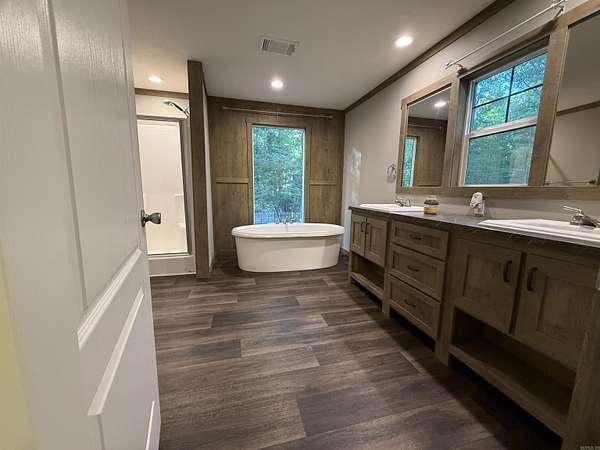 Welcome to your dream mini-farm on 7 beautiful acres just minutes from Sheridan and I-530! This 4BR/2BA, 1,904 sq ft 2019 manufactured home on a permanent foundation offers an open layout perfect for family living. The property features multiple outbuildings--including an 11x30 wooden-floored shop with loft storage--plus a three-part barn, chicken coop, greenhouse, high tunnel, and a concrete-floored shed. A large pond, fenced pasture, RV/boat cover, and a new three-part carport with enclosed shed make this property ideal for livestock, gardening, or hobby farming. Enjoy mature Muscadine vines, blueberries, heritage flowers, and scenic country privacy with modern comforts. An older fixer-upper home on the property adds even more potential. Fully fenced backyard, RV hookups, and ample space for expansion or subdivision. Whether you're looking to homestead, raise animals, or just enjoy peaceful country living, this property is ready for you!Sellers offering flooring allowance