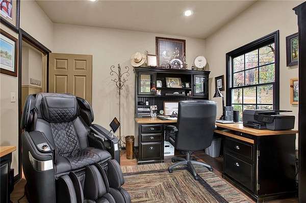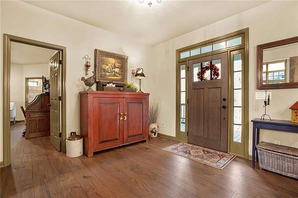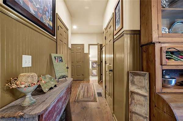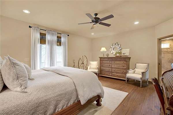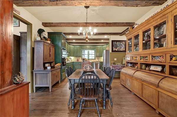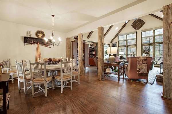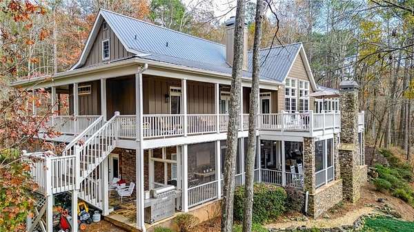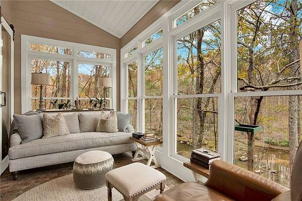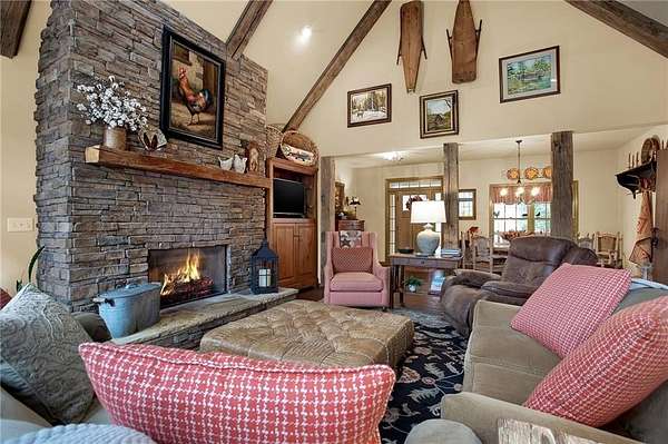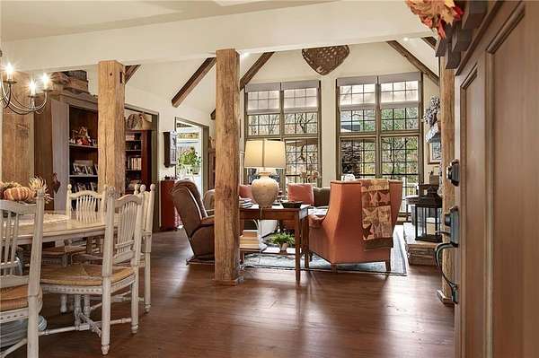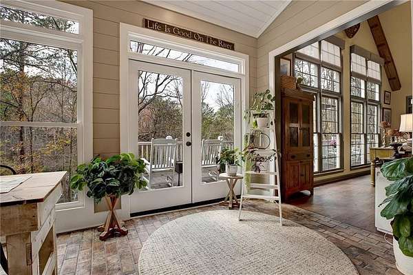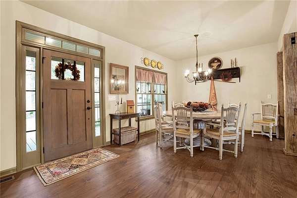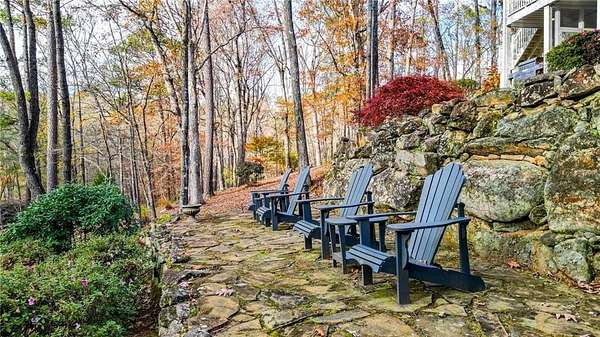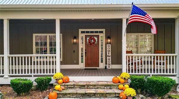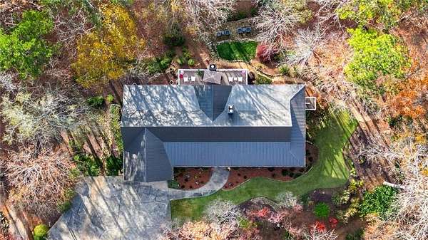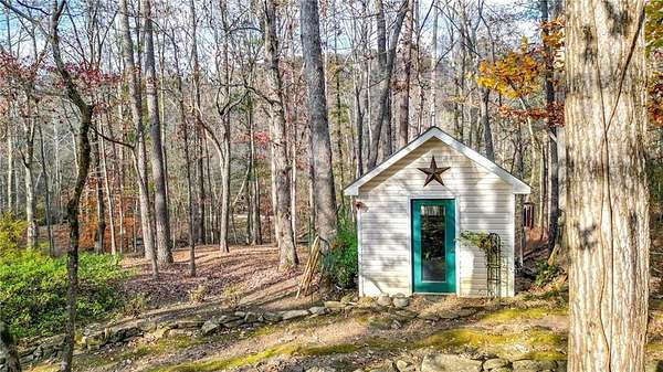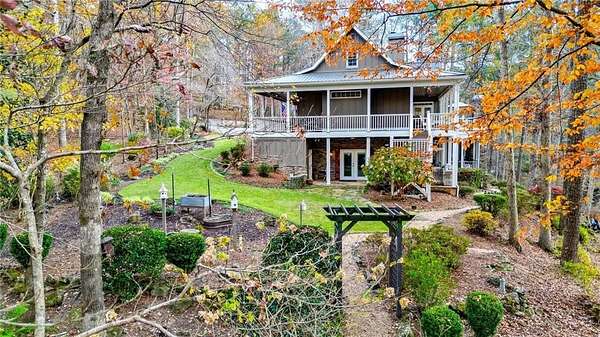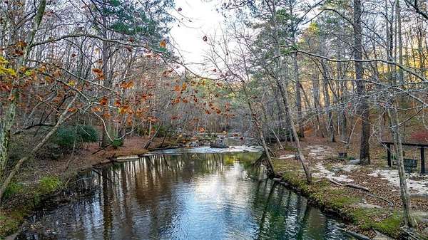 Nestled on 10.42 private, pristine acres, this custom waterfront home offers a rare and tranquil retreat on the highly sought-after Settingdown Creek. Over 1,300 feet of stunning creek frontage creates a feeling of being a world away, yet the property remains conveniently close to local schools, parks, and shopping. The scenic, winding driveway leads to a sanctuary that was once part of the historic Pooles Mill. Along this unique stretch of "white water" creek, you will discover a mesmerizing waterfall, natural boulders, and several swimming holes, natural rock bridge accessible via a historic logging road. Inside, the bespoke country estate boasts high-end, custom finishes throughout. The main level features a chef's kitchen with a beautiful hammered copper island and natural beams from a century-old barn in South Carolina, which extend into the family room. Wide-plank pine floors, meticulously laid with cut nails, flow throughout. The inviting family room is centered around a cozy natural stone fireplace. A lavish, oversized owner's suite on the main floor includes private exterior access to a wrap-around deck, allowing you to fall asleep to the tranquil sound of rushing water. Its gorgeous, handicap-accessible zero-entry walk-in shower is finished with natural stacked stone. The suite also offers dual walk-in closets and a private laundry room with direct access to the deck. Open the door and let the sounds of water come rushing in! The sophisticated living space continues on the terrace level, which hosts a second full kitchen with a gas cooktop, a second family room with a wood-burning stove, and a second full laundry area. Two additional bedrooms with walk-in closets and a newly remodeled full bathroom complete with an all tile wet room on this level. The terrace opens onto a newly expansive screened-in patio with a natural rock fireplace--an entertainer's dream perfect for hosting large gatherings while listening to the creek. The property is designed for low-maintenance luxury, with new concrete siding and a metal roof. Beyond the home, the manicured and landscaped grounds offer a walking path along the creek, a raised garden, and an additional outbuilding. Two potential homesites, one of which is already perk-tested, present an excellent opportunity for a family compound. This is truly a one-of-a-kind property where no expense was spared. The construction and materials of this fully custom home are well ABOVE average and would cost significantly more money to replicate in today's market. Shown by appointment only.
