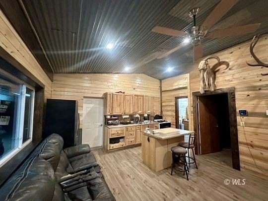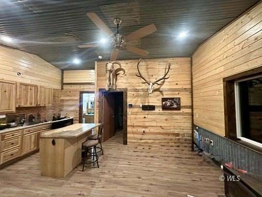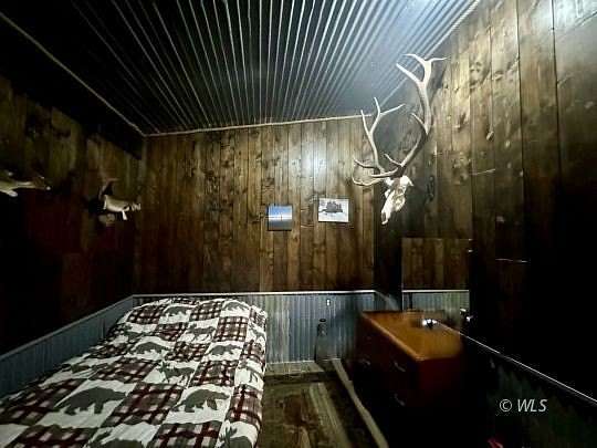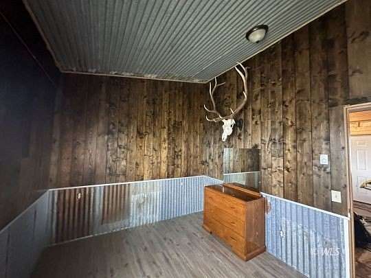 Welcome to your quiet retreat nestled on 4 acres with breathtaking mountain views. This unique 1-bedroom, 1-bath home features an inviting open floor plan with a warm, rustic charm. The eat-in kitchen flows seamlessly into the living space, highlighted by wood floors and wood-paneled walls that create a cozy cabin feel. The bedroom offers a distinctive touch with a blend of wood and metal walls, adding modern character to the rustic design. An attached garage provides convenience and comes equipped with a vehicle lift-perfect for hobbyists or car enthusiasts. With plenty of outdoor space to explore, this property is ideal for those seeking privacy, room to roam, and an unbeatable mountain backdrop. Whether you're looking for a weekend getaway, full-time residence, or investment property, this home combines functionality, charm, and setting in one package.