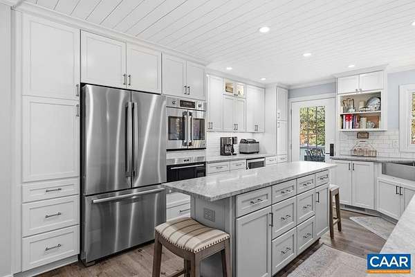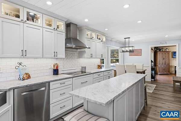 Absolutely Stunning Countryside Home on 4 Gorgeous Lushy Acres! Experience peaceful country living with open, level land perfect for farm animals, gardens, or gatherings with family and friends. This home has been beautifully updated throughout. The kitchen is a showstopper and deserves a magazine feature—showcasing Wolf appliances, induction cooktop, easy access GE French door oven, Bosch refrigerator, wine cooler, marble countertops, and custom cabinetry with glass-fronts, interior lighting, and roll-outs. Inviting living space thru-out. The cozy living room features a wood-burning fireplace, large picture window, and custom window coverings thru-out versatile second living space is perfect for a home office or study. The primary suite offers a double vanity, walk-in glassed shower, and tile flooring. All bedrooms are generously sized w/fans. Additional upgrades include Trane 2-zone HVAC, Anderson windows (2 yrs old), new recessed lighting, new plumbing. New laundry cabinets and laundry chute. Enjoy stunning country views from all 3 decks including covered porch & almost all newly replaced decking. Unfinished walk-out terrace offers endless potential. This is a must see countryside retreat so well & lovingly cared for. Firefly.