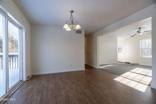 Tucked away at the end of a quiet cul-de-sac, this modular ranch home offers privacy, space, and peaceful surroundings on 5.14 acres. The main level features three bedrooms, including a main bedroom conveniently located on the first floor, and an easy, functional layout ideal for everyday living. The walk-out basement adds valuable additional space with a room that could be used as a fourth bedroom complete with a large closet, perfect for guests, a home office, or flexible living needs. Enjoy year-round comfort with central air, and step outside onto the beautiful back deck overlooking a serene, natural setting - ideal for relaxing or entertaining. With its expansive acreage, quiet location, and thoughtful layout, this home delivers the perfect blend of comfort, privacy, and country tranquility.