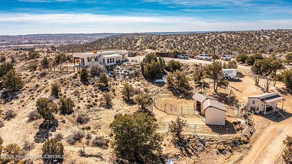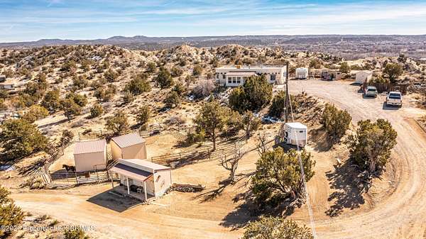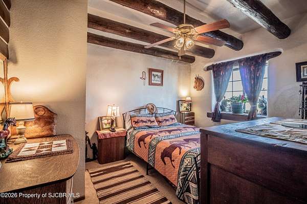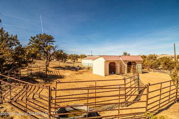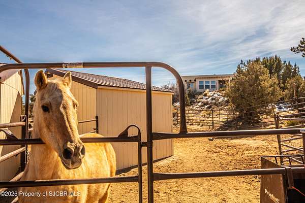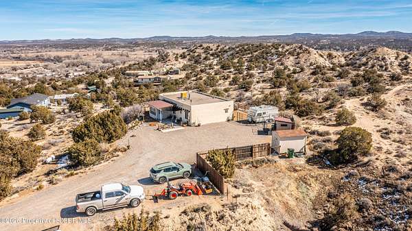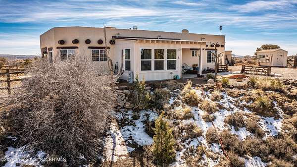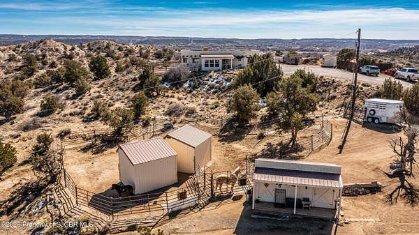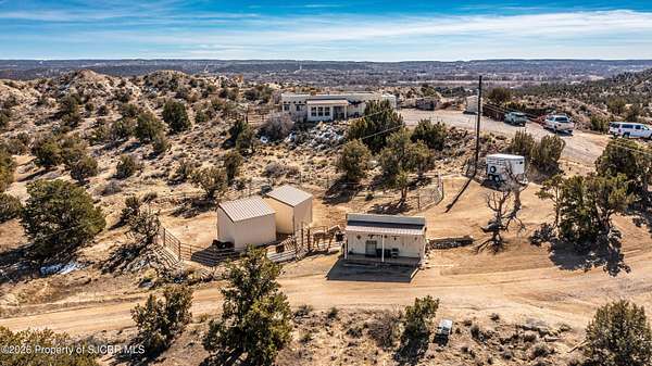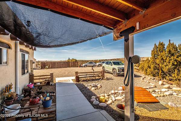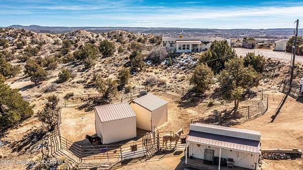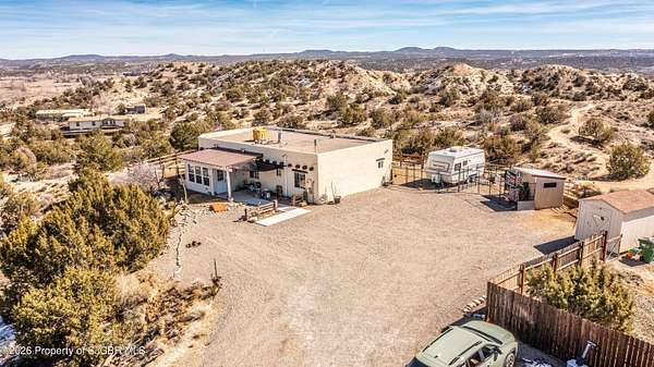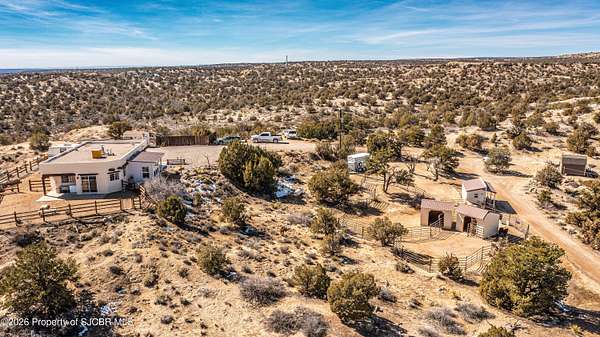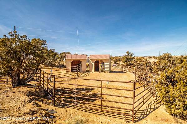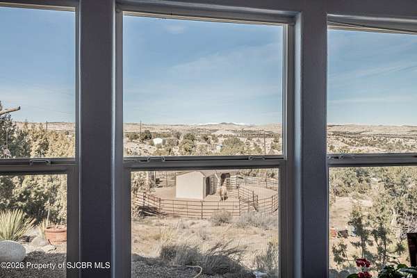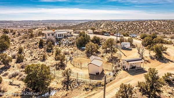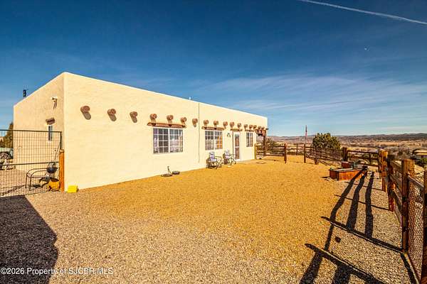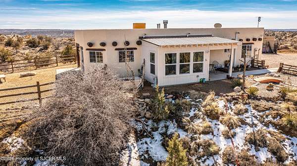 Experience wide-open freedom and unforgettable views at this incredible hobby farm ideally located between Aztec, NM and Durango, CO. Backing directly to thousands of acres of BLM land, this property offers endless riding, hiking, and exploring right out your back gate. If you've been searching for space, privacy, and unobstructed mountain vistas, this is it.The land is the true star of the show -- usable, versatile acreage with established corrals and multiple outbuildings ready for livestock, horses, equipment, or your next project. Whether you're looking to create a self-sufficient homestead, operate a small ranch setup, or simply enjoy room to breathe, this property delivers.And the views -- absolutely breathtaking. Million-dollar mountain views stretch across the horizon, offering stunning sunrises, glowing sunsets, and wide New Mexico skies that change by the hour. With no immediate rear neighbors and direct BLM access, your backdrop will remain wild and protected.The charming adobe home features thick 19-inch exterior walls for timeless character, natural insulation, and quiet comfort. Stucco exterior adds durability and classic Southwest appeal. Inside you'll find 3 bedrooms, 2 baths, and a cozy fireplace perfect for cool desert evenings, with a sun room for enjoying the mountain views in all seasons. The home is efficient, manageable, and designed to complement the lifestyle the land provides.Properties with this kind of privacy, usable acreage, direct BLM access, and commanding mountain views rarely come available in this sought-after corridor between Aztec and Durango.Bring your horses, your vision, and your love of wide-open space.