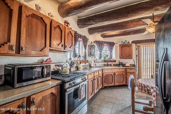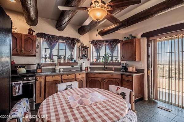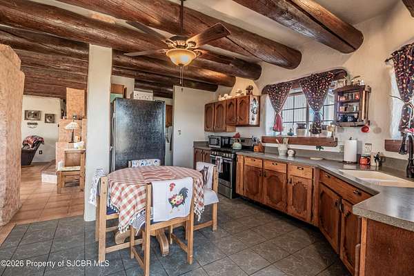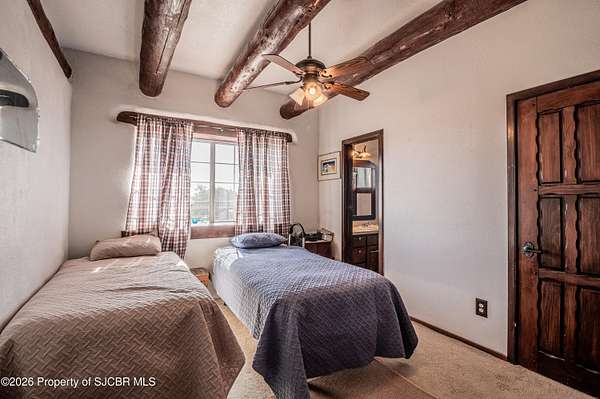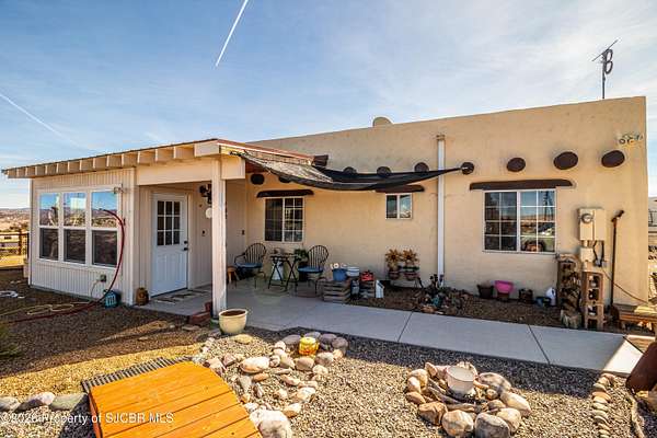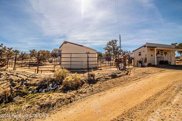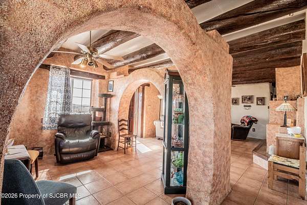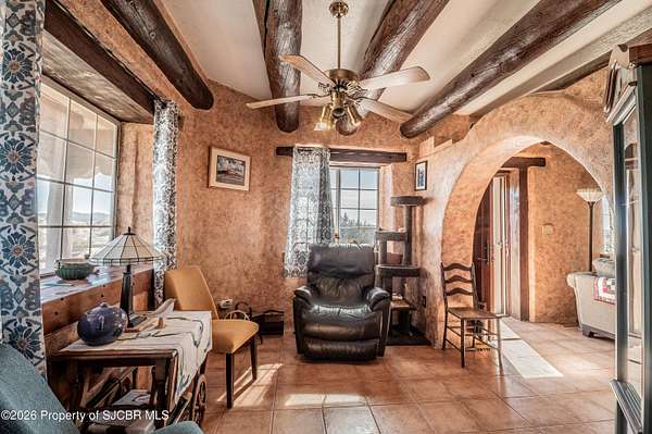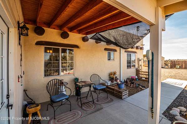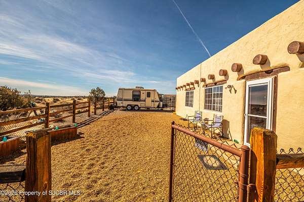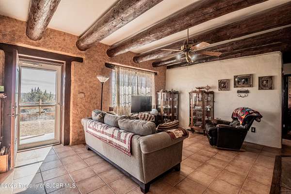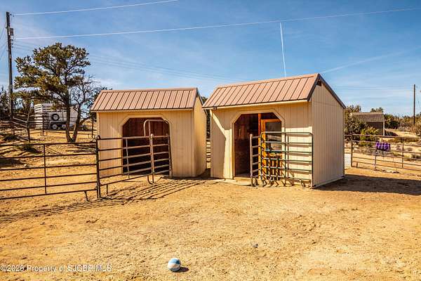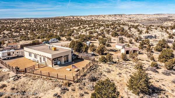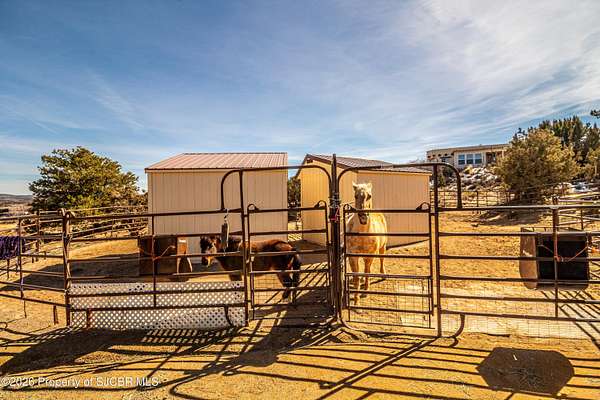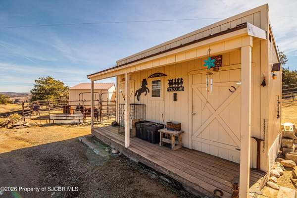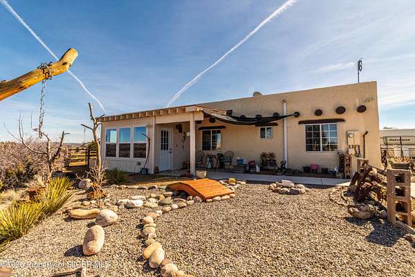 Experience wide-open freedom and unforgettable views at this incredible hobby farm ideally located between Aztec, NM and Durango, CO. Backing directly to thousands of acres of BLM land, this property offers endless riding, hiking, and exploring right out your back gate. If you've been searching for space, privacy, and unobstructed mountain vistas, this is it.The land is the true star of the show -- usable, versatile acreage with established corrals and multiple outbuildings ready for livestock, horses, equipment, or your next project. Whether you're looking to create a self-sufficient homestead, operate a small ranch setup, or simply enjoy room to breathe, this property delivers.And the views -- absolutely breathtaking. Million-dollar mountain views stretch across the horizon, offering stunning sunrises, glowing sunsets, and wide New Mexico skies that change by the hour. With no immediate rear neighbors and direct BLM access, your backdrop will remain wild and protected.The charming adobe home features thick 19-inch exterior walls for timeless character, natural insulation, and quiet comfort. Stucco exterior adds durability and classic Southwest appeal. Inside you'll find 3 bedrooms, 2 baths, and a cozy fireplace perfect for cool desert evenings, with a sun room for enjoying the mountain views in all seasons. The home is efficient, manageable, and designed to complement the lifestyle the land provides.Properties with this kind of privacy, usable acreage, direct BLM access, and commanding mountain views rarely come available in this sought-after corridor between Aztec and Durango.Bring your horses, your vision, and your love of wide-open space.
