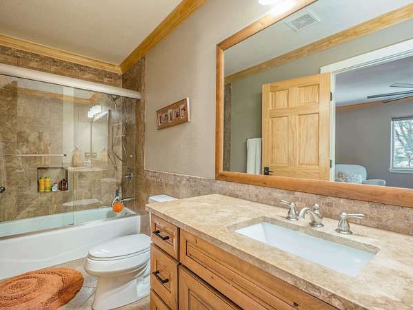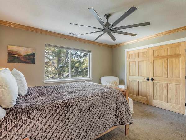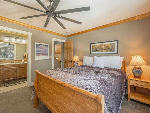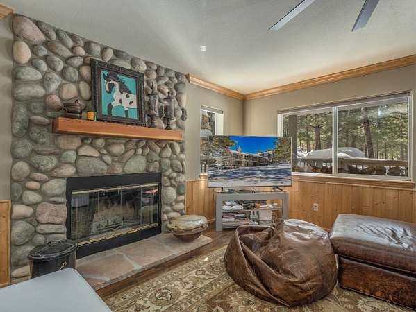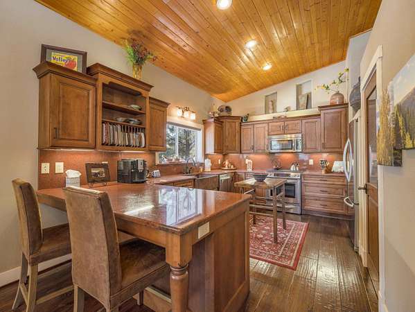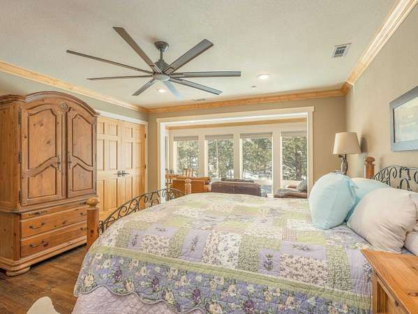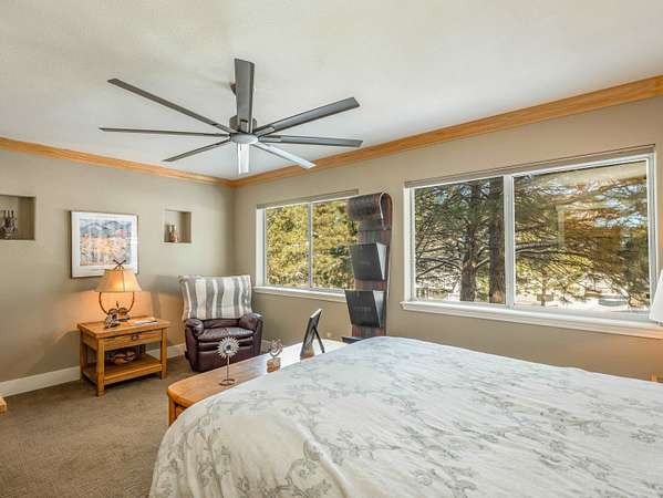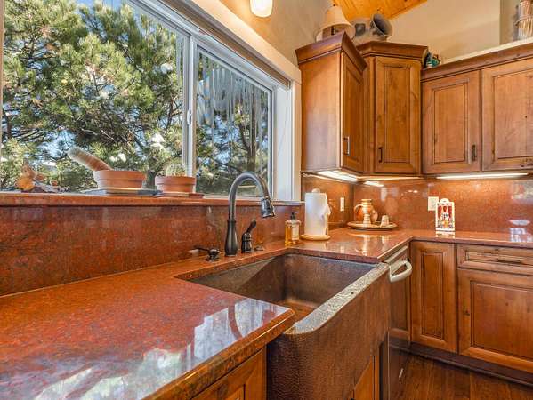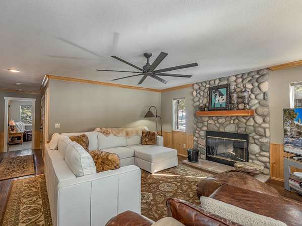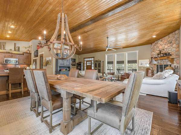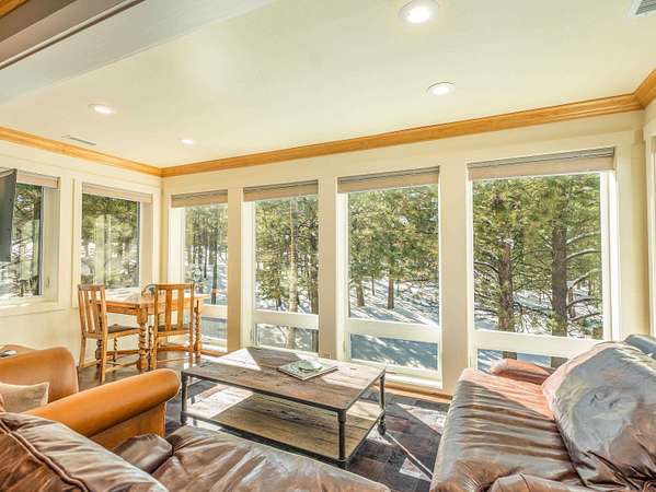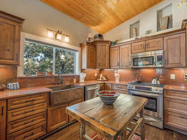 Nestled on an expansive 1.9-acre lot surrounded by whispering pines, this thoughtfully upgraded retreat is just minutes from the Angel Fire Resort Golf Course and Country Club, and a short drive to the ski slopes - offering the perfect year-round mountain escape. Inside, a welcoming great room features a striking window wall framing sunset views of Wheeler Peak and a cozy wood-burning fireplace - the ideal gathering spot after a day of adventure. The upgraded kitchen is generously sized, while the open dining area flows onto a covered deck, perfect for dining al fresco or unwinding under the stars. The spacious primary suite includes a sunny sitting area (or office), updated ensuite bath, and double closets. Two guest bedrooms offer comfort and privacy for family and friends - one with its own ensuite bath. A bonus living space, complete with its own fireplace, is perfect for watching the big game, hosting movie nights, or simply spreading out and relaxing. The attached three-car garage includes a dedicated golf cart bay, storage room, refrigerator, and a bonus bunk room - ideal for a kids' hideaway, hobby space, or overflow guests. Whether you're entertaining or enjoying some much-deserved R&R, 79 Spyglass Hill Road is the perfect basecamp for mountain living at its finest. Sold fully furnished, decorated, and equipped. This is the home you will come to appreciate more every year due to the Seller's pride of ownership and updates including a new roof, new black-top driveway, remodeled kitchen and bathrooms and more.