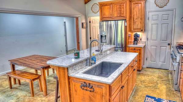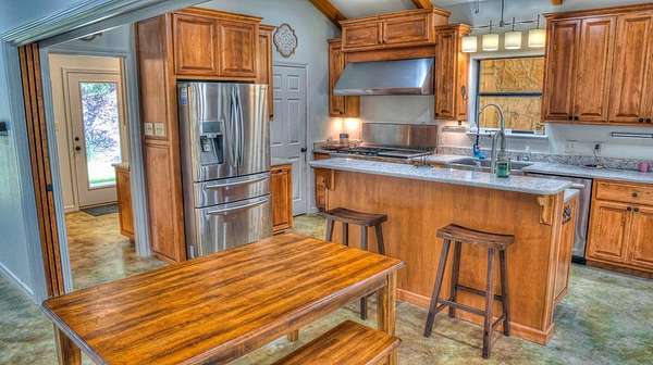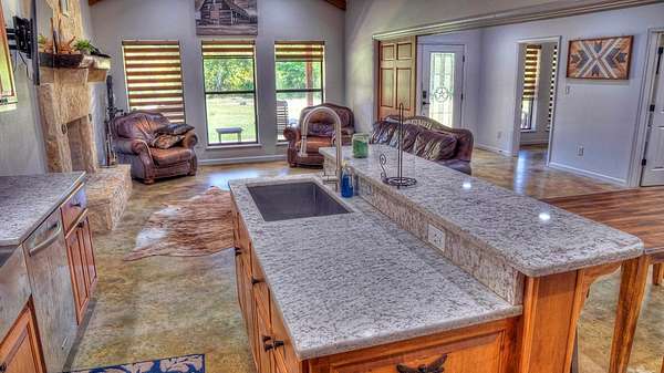 This 5.05-acre property is located at 79 Woodruff Rd in Leakey, TX 78873. The property is pending sale. It has a 2,048 sq ft 2 bedroom, 2 bath house built in 2016.