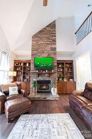 Welcome to this beautifully custom built full-brick gem on 5+ Acres in picturesque country setting in Clover. This home has been loved with care and style. As you enter, you'll be greeted by a two story entryway, open concept Great room with Custom built-in shelves & storage surrounding the two story stone fireplace with views to the tree-lined backyard. With a Chef's kitchen featuring high-end appliances, large island, beautiful countertops, custom cabinetry perfect for anyone who loves to cook or entertain. Plenty of room to gather in the eat in kitchen overlooking the private backyard. The open-concept layout flows with natural light, giving the living spaces a warm, inviting feel. The primary suite is a true retreat with 2 walk in closets, spa-like bath, soaking tub, double vanities and a spacious walk-in shower is a perfect place to unwind. Upstairs find two bedrooms, full bathroom, an additional very large flex room over 2 car garage ideal for office, hobbies, or a great guestroom with a walk in closet. Outside, the landscaped, fenced yard is ready for everything from barbecues to quiet mornings with coffee on the relaxing screened porch and soak in the fabulous Custom 14 x 33 Fiberglass heated saltwater pool. The front porch & garage floor have epoxy covered floors. Custom built and so convenient, owners added elevated overhead storage in garage. Top-rated schools, you'll love both the home and the Close proximity to Charlotte, Gastonia, Rock Hill, Airport.