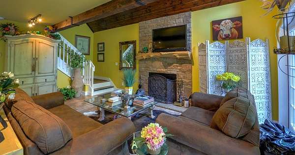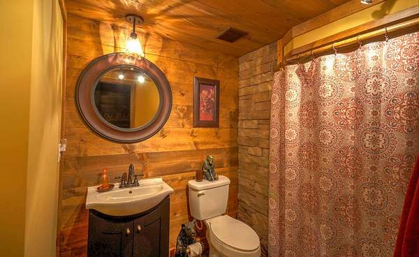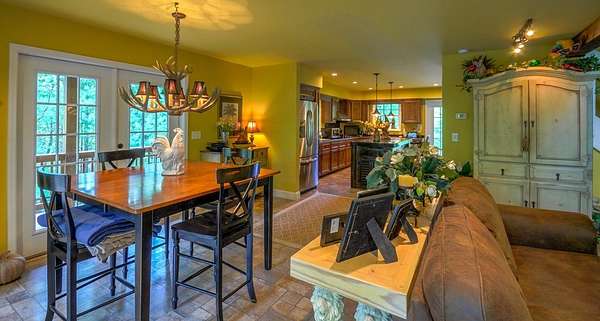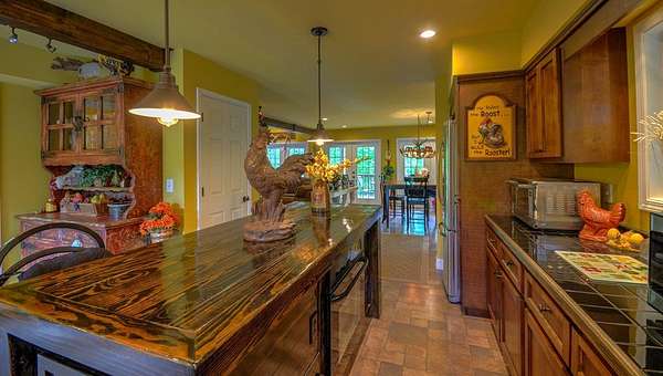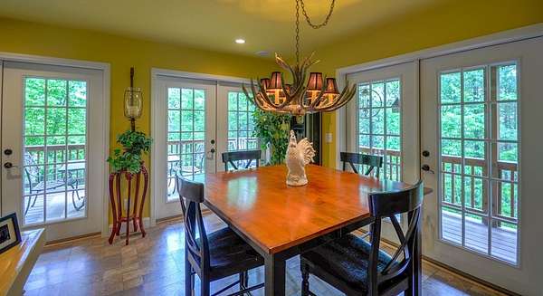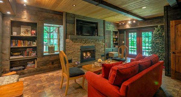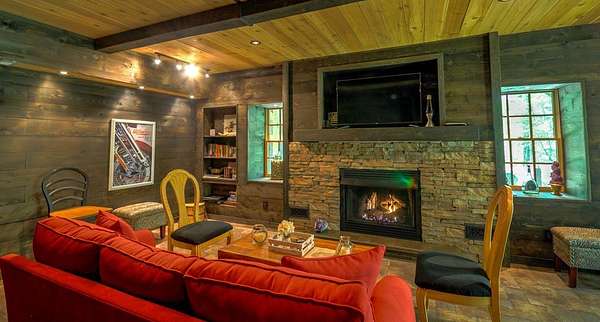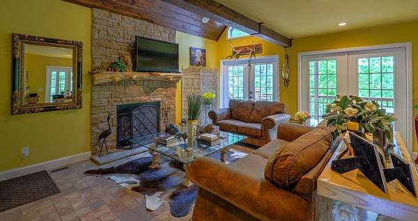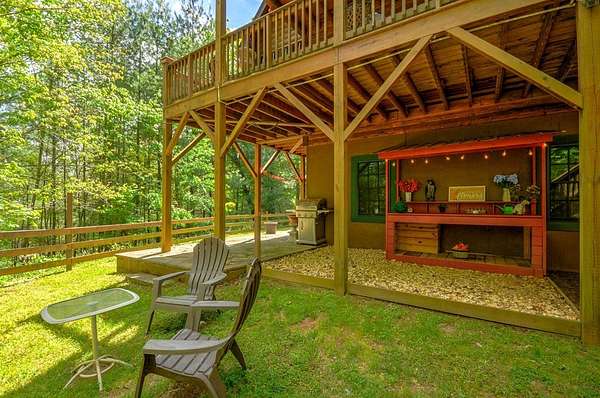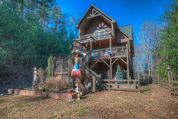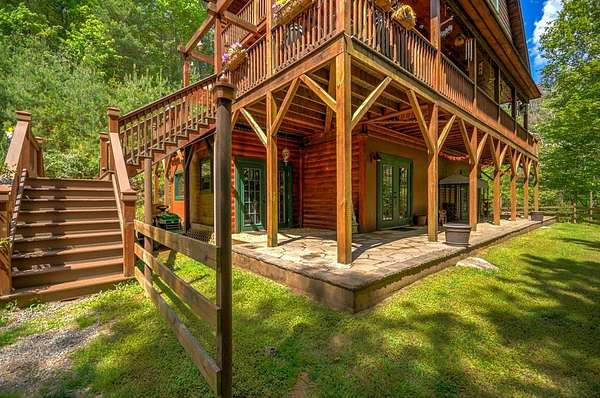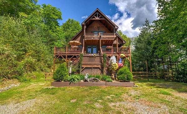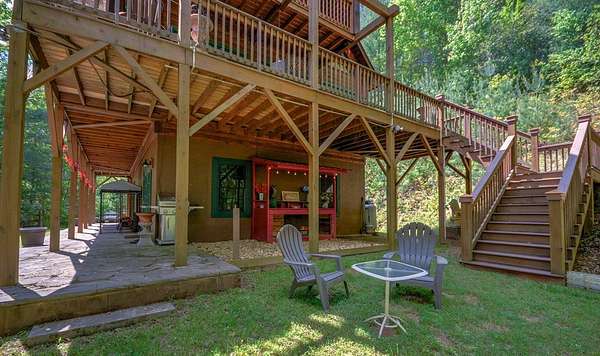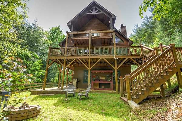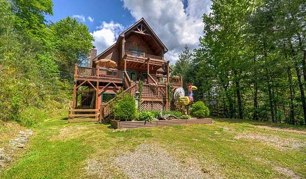 REMARKABLE HOME ON 10 UNRESTRICTED ACRES! Privacy abounds on this stunning property bordered by protected land, offering a rare sense of seclusion and natural beauty. This masterfully designed home features a phenomenal kitchen with abundant cabinetry and counter space, a striking copper farmhouse sink, and a spacious center island--perfect for entertaining or everyday living. The inviting dining area flows seamlessly into the cozy living room, highlighted by a beautiful stone fireplace that creates a warm and welcoming atmosphere. The exquisite primary suite is a true retreat, complete with its own fireplace and a luxurious en-suite bath featuring a double vanity and elegant tile walk-in shower. The lower level offers endless possibilities--ideal for the ultimate "man cave," recreation room, or guest quarters--boasting another cozy fireplace, a full bath, and a convenient kitchen area. Step outside to enjoy abundant usable outdoor space, where nature takes center stage with a crystal-clear creek, two charming small waterfalls, and a tranquil pond. Whether relaxing, entertaining, or exploring the land, this property delivers unmatched serenity and versatility. Truly one of a kind! Conveniently located to HVR Casino, local vineyards, white water rafting, Blairsville, McCayesville and Blue Ridge GA. Call for a showing today!