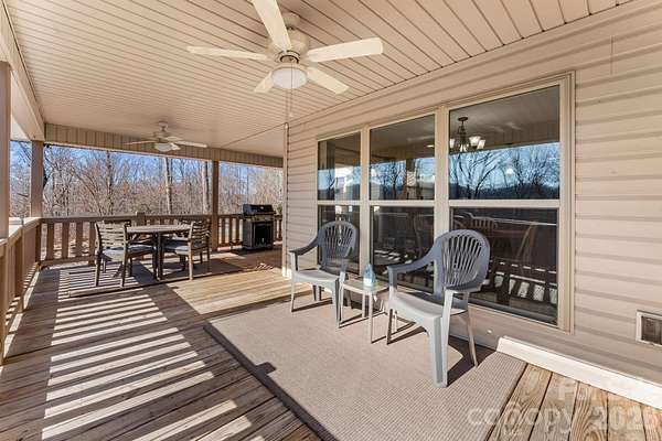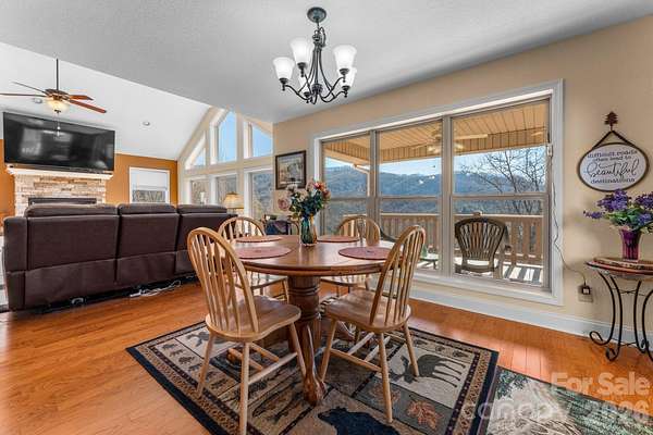 This 3.65-acre mountain retreat offers sweeping 180-degree views of the beautiful Smoky Mountains. Located in the private community of Mountainview at Brush Creek, this custom-constructed, furnished home features 3 bedrooms and 2 full bathrooms and is thoughtfully landscaped with raised garden beds, fruit trees, and native plants. Ultimate convenience and efficiency come with 21 solar panels paired with updated, high-efficiency solar batteries, providing the option for off-grid living if desired. The system runs power back to Duke Energy, with typical electric bills averaging around $20 per month and approximately $40 during the winter months. Step inside to an open floor plan where the living room is anchored by a cozy fireplace and large windows that flood the space with natural light. A charming sitting nook off the living room creates the perfect spot for a home office, hobby area, or a quiet reading retreat. The kitchen is well-appointed with cherry wood cabinets featuring under- and over-cabinet LED lighting, granite countertops, and a large island with range-ideal for gathering during meals. The adjacent dining area opens onto a spacious covered deck, perfect for enjoying the cool temperatures at the 2,800-foot elevation, with a gas grill conveniently connected to the primary propane tank. The primary bedroom offers a private ensuite bathroom with a double vanity, custom cabinetry, a stand-up shower, and a separate soaking tub. Two additional guest bedrooms share a hall bathroom with a stand-up shower. Outdoor living is just as impressive, featuring a chain-link fenced backyard, ideal for pets or play, along with a decorative block retaining wall complemented by stone stairs that enhance both function and curb appeal. A dedicated outbuilding provides covered tractor housing and additional storage, while the attached two-car garage offers even more room for equipment and recreational toys, including a negotiable four-wheeler. Just a short drive from downtown Bryson City, you'll enjoy easy access to dining, shopping, and entertainment, as well as endless outdoor recreation-from hiking to waterfalls and mountain biking to whitewater rafting or tubing on Deep Creek. This mountain oasis is ready to welcome you home and serve as the perfect base for all your Smoky Mountain adventures.