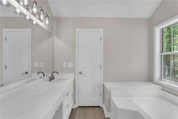 - Beamed Ceilings, Cathedral Ceiling(s), Disappearing Attic Stairs, Double Vanity, High Ceilings 10 ft Main, Recessed Lighting