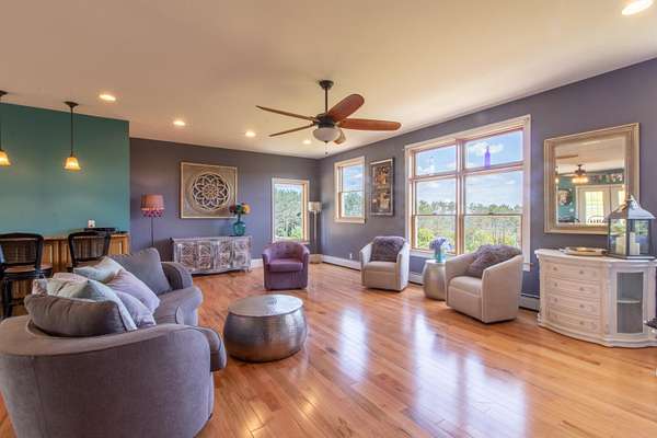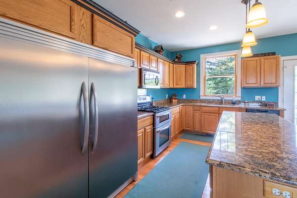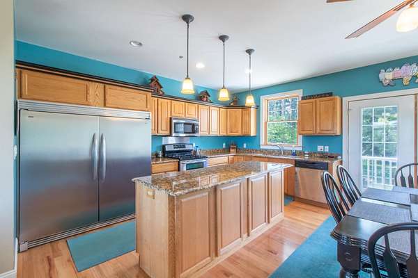 Island Pond Retreat with the Ultimate Heated Garage Space. Privately situated on 37.8 acres, this 3-bedroom, 3-bath home has much to offer, including stunning sunrises and sunsets. The ground level garage consists of 3 standard bays and a 4th bay offering 2 overhead doors, including a 10x12' door ideal for larger vehicles as well as snowmobiles, ATVs, and UTVs. Radiant heat on this level means you can comfortably work on vehicles or gear year round. There's also a family room and 3/4 bath. Upstairs, the open-concept living, dining, and kitchen area is designed to capture the mountain views and features tall ceilings, wood floors, and plenty of natural light. The kitchen is well-appointed with granite countertops, abundant cabinetry, and an extra-large Kenmore side-by-side fridge and freezer. Step from the dining area onto a private balcony-an ideal spot for morning coffee. Three spacious bedrooms with wood floors, a full bath, 1/2 bath, and laundry room with an abundance of cupboard and counter space complete this level. Outside, enjoy the concrete patio that wraps around two sides of the home, explore the fields and woods, or take advantage of direct access to the VASA trails- VAST nearby. Well suited for comfortable everyday living with unmatched garage and storage options, or as an exceptional vacation property for outdoor and motor enthusiasts alike. Located 4 miles from the heart of Island Pond and 17 miles from East Burke Village, home to Kingdom Trails and Burke Mountain.