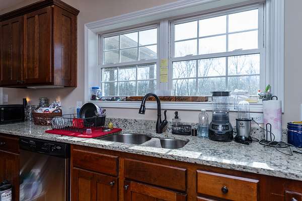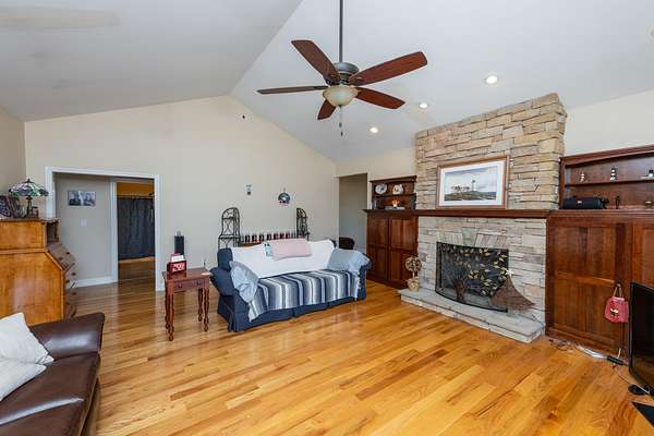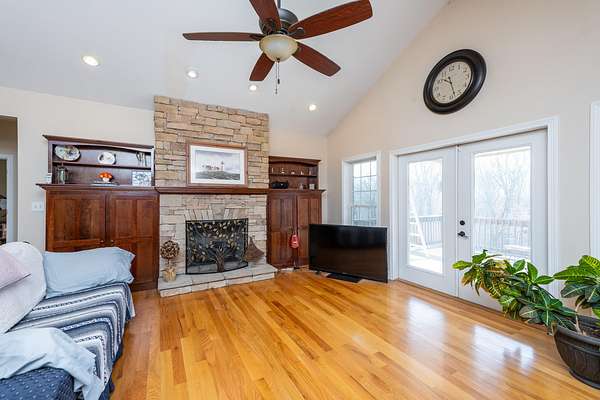 Continue to show. 48 hour kickout / sale of other property contingency. Convenient to Paris, Winchester and Lexington, this custom built one owner, ranch style home has a split bedroom floor plan. Quality finishes include hardwood floors; vaulted living / great room with gas fireplace & stone chimney; custom cabinetry; primary bedroom w/ tray ceiling & private bath, walk-in closets and attached laundry room on main level; Geothermal hvac. The walkout, lower level features a finished full bathroom with the balance of the space awaiting your imagination and finishing touches. An attached 2 car garage on the main level is supplemented by a large basement garage (space for 2 cars (stacked)) with rear entrance. The covered rear deck is accessed from the main living area and overlooks the partially fenced rear yard which is perfect for children and pets, with the view extending to wooded areas offering wildlife habitat. This rear deck also partially covers a large ground level patio that is accessed from the walkout basement. Note: Two prefab storage buildings do not convey. 48 hour kickout - contingent on other property selling.