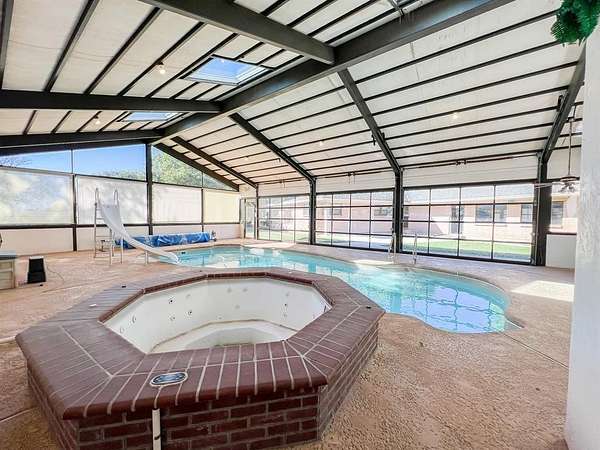 Est $2,566/moVersatile living and workplace just south of the Red River. Home, pool house and workshop on 1.98ac. Home offers updated kitchen w granite & motorized shades. Family room w ultimate entertaining cabinetry, island. Knotty pine office utility or 4th bdrm. Handicap-friendly. Primary w updated ensuite. Enclosed fiberglass pool w cool deck, glass garage doors & full bath. 2,400sf insulated workshop w 10x16' overhead door, exhaust fan. Large trees, metal wood-shake-look roof w metal eaves and adorable playhouse.