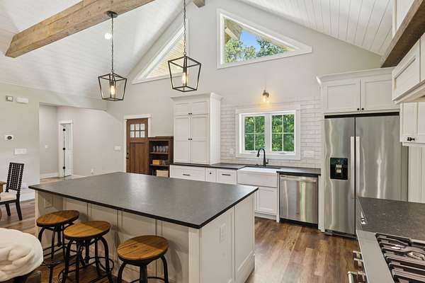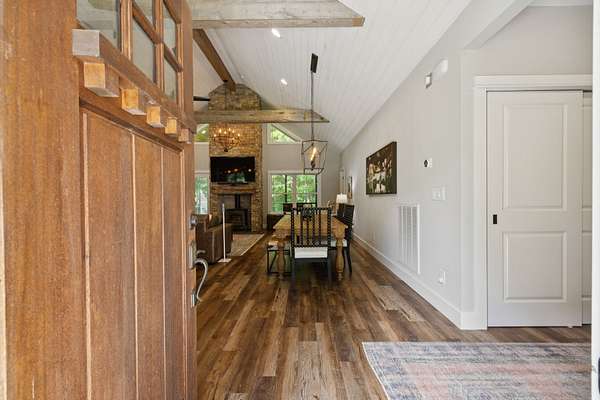 EXCLUSIVE RETREAT IN WILLIAMSON COUNTY Gated and tucked away on 5 peaceful acres with premium finishes throughout, this stunning home offers a rare combination of privacy, comfort, and elevated living. A spacious covered front porch welcomes you inside to an open layout featuring soaring A-frame ceilings, exposed beams, and a striking stone fireplace that anchors the living space. The kitchen showcases ZLINE appliances, a large island, and incredible craftsmanship. The main-level owner's suite offers a relaxing sanctuary with a walk-in closet and custom-tiled shower. A screened-in porch invites you to enjoy surrounding nature and visiting wildlife year-round. A heated and cooled three-car garage with epoxy flooring offers ample space for vehicles, hobbies, or a personal workshop, while the separate storage barn provides even more room for projects, gear, or recreational pursuits. Zoned for Williamson County Schools and conveniently located near I-40 and I-840, with shopping and dining just 10 minutes away, this property truly has it all. Schedule your private tour today. DON'T MISS VIDEO WALK THROUGH LINK