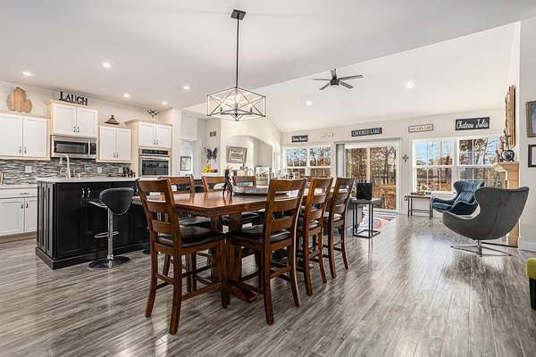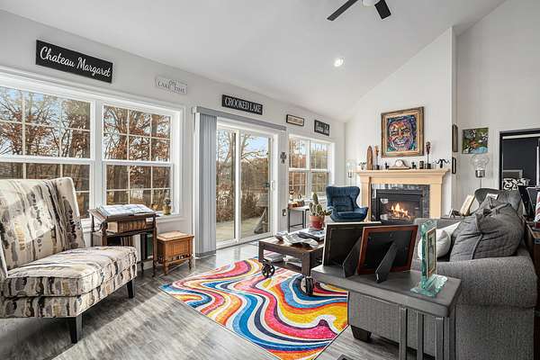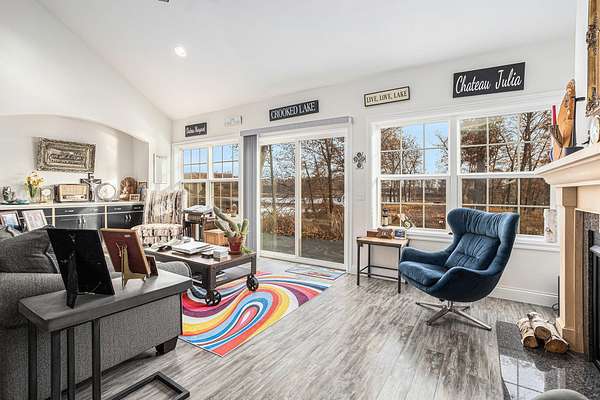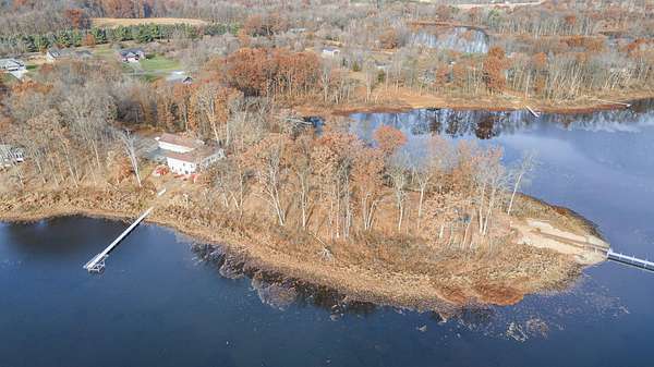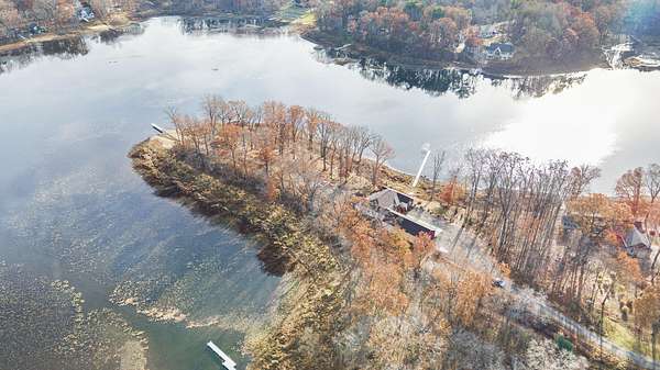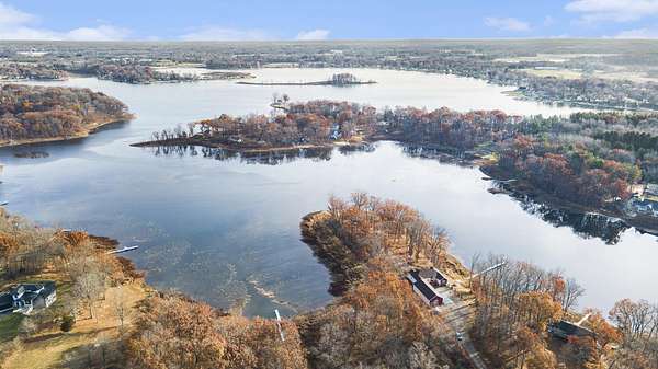 Rarely does a property of this scale and setting come to market on all-sports Crooked Lake--3.8 acres on a private peninsula with more than 1,150 feet of frontage and panoramic water views. This remarkable walkout ranch offers 3,300 finished sq ft (4,200 total) and incredible privacy with water views from nearly every window. The home features 2 main-floor ensuite bedrooms, a dramatic living room with a wall of windows and gas fireplace, gourmet kitchen with pantry, and main-floor laundry. The walkout lower level includes an office, additional bedroom, full bath, spacious family room, and a huge bonus area currently serving as a 1,000-bottle wine cellar with tasting room--ideal for entertaining or a fitness studio. Enjoy 2 docks, a sandy beach, beautifully wooded grounds, and multiple patios overlooking the lake. A rare 6-car garage with second kitchen adds exceptional versatility. A truly one-of-a-kind lakefront retreat combining luxury, privacy, and breathtaking natural surroundings.