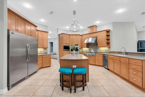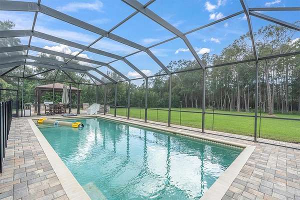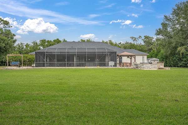 Under contract-accepting backup offers. *Accepting back up offers* Welcome to 7908 Lady Lake Lane, a private estate in the coveted Lady Lake Estates of Odessa. This 4 bedroom, 4.5 bathroom pool home offers over 4,200 sq ft of luxury living on nearly 3 acres of serene grounds with no HOA. Designed for both entertaining and everyday comfort, the home features a gourmet chef's kitchen with a 6-burner gas cooktop, double ovens, and a bright breakfast nook overlooking the pool. The spacious family room offers a fireplace and custom lighting, while additional spaces include a media room/main bedroom with surround sound and a flexible bonus/game room with a separate room that has a pool table. All bedrooms feature en-suite or private baths, with customized closets throughout. Outdoors is an entertainer's dream with a screened-in saltwater pool, hot tub, fire pit, dual outdoor kitchen areas, a pergola seating area, and a charming swing seat with fruit trees. The 3-car garage and wraparound driveway provide ample parking, and the newer roof (2020) offers peace of mind. Additional highlights include zoned HVAC, and an oversized laundry room. Surrounded by mature oaks and peaceful natural views, this home blends indoor elegance with outdoor resort-style living, all within minutes of top-rated schools, shopping, and major roadways.