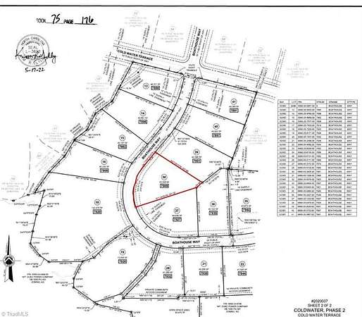 HWY 158 to Coldwater Rd. Left on Coldwater Terrace. Left on Boathouse Way. Lot 38.