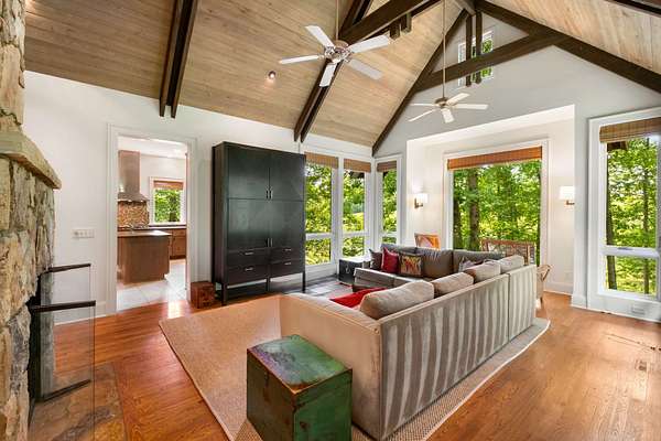 - Stone, Wood Siding