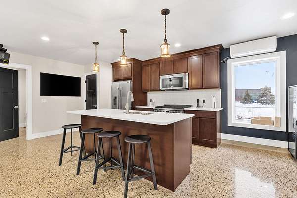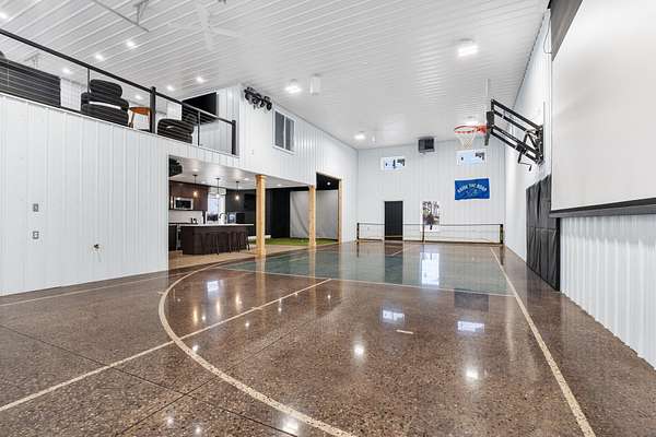 Welcome to one of the coolest hangout/hosting spaces in Zeeland! This unit is fully finished and ready for you to enjoy. Even in the cold weather, you can play a competitive game of pickleball, make buckets on the mounted basketball hoop, get a round in on the Uneekor golf simulator, or watch the game on the 188'' projector! There is a full kitchen with commercial grade appliances, solid surface countertops, and plenty of cupboard storage. In the unit is a built mezzanine with a hangout space above, a designated office, and storage space. No detail was spared in this unit from the 7 mounted speakers to the led party lights. This is the perfect place to build community, make memories, and to enjoy the winter months. Come see for yourself what makes this unit so special!