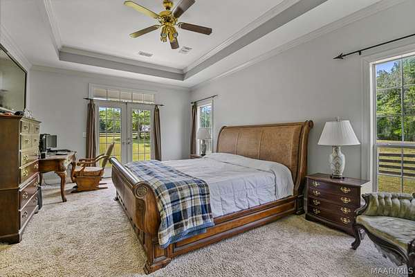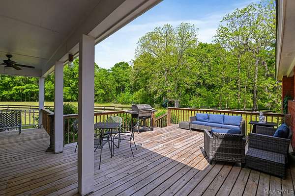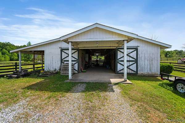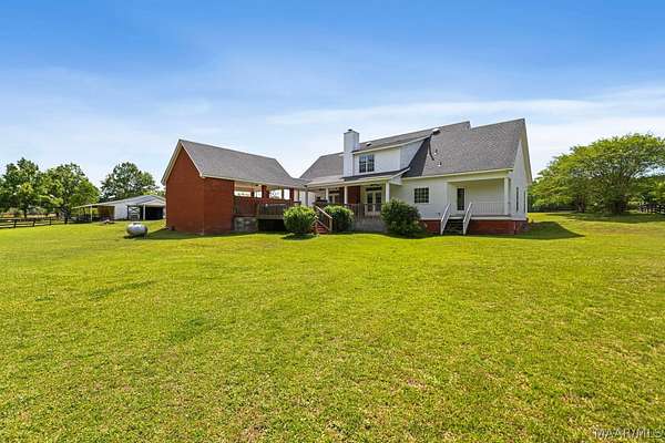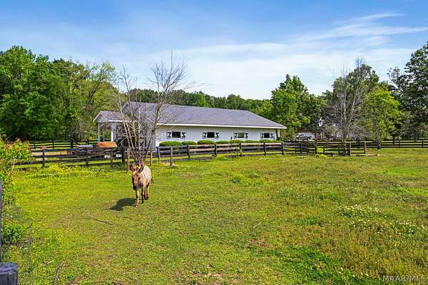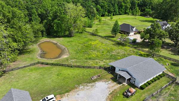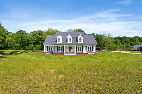 Custom built and situated on 6.8 acres in Pike Road, this 4 bedroom, 3.5 bath home offers space to live, land to use, and room to make it your own. Bring your horses. The property features an attractive 4 board fence and includes a 5 stall barn with tack room, wash rack, water, and a covered shed. The home offers approximately 3,300 square feet with a large living room, spacious dining room, and an eat in kitchen with bar and breakfast room. There is also an office that could serve as an additional bedroom if needed. The main level includes a spacious primary suite, with three additional bedrooms upstairs and a shared living or landing area. Wraparound porches add over 1,000 square feet of outdoor living. The home offers a solid footprint and layout, with opportunity for the next owner to make updates over time to suit their preferences.