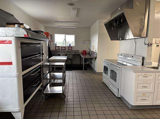 - deck commercial pizza oven, ranges, washer & dryer and a walk-in locker. This includes dining tables and chairs, kitchen utensils, and