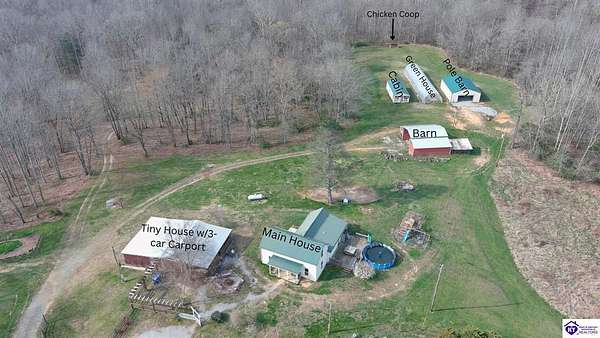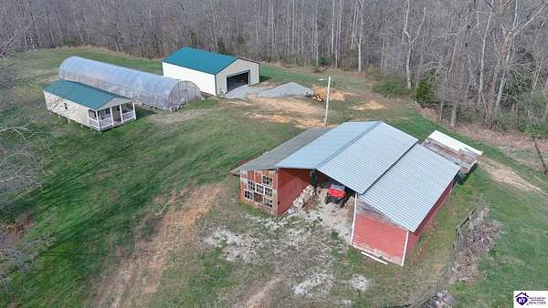 Private Retreat on 44.77 Acres. Welcome to your own slice of countryside, where a paved road winds through rolling, scenic farmland & leads you to this rare property offering the perfect blend of cleared and wooded land already subdivided into 5 lots for added flexibility & future potential. Conveniently located just 14 min. to Hodgenville, 30 min. to Elizabethtown, 48 min. to Fort Knox, & within an hour to Louisville, this property delivers peaceful seclusion without sacrificing accessibility. The home has seen extensive updates & improvements, giving buyers confidence & peace of mind, including: New HVAC (2025) New well pump (2024) Septic serviced (2024) Updated appliances (2021–2023) New gas fireplace (2021) Structural improvements, including steel foundation support beams, floor joists, and crawl space vapor barrier (2021) Fire safety system with 10-year batteries (2023) The home has seen extensive updates & improvements, giving buyers confidence in the big-ticket items already being addressed, including: New HVAC (2025) New well pump (2024) Septic serviced (2024) Updated appliances (2021–2023) New gas fireplace (2021) Structural improvements, including steel foundation support beams, floor joists, and crawl space vapor barrier (2021) Fire safety system with 10-year batteries (2023) Inside, the home offers a solid foundation with major systems updated, while leaving room for cosmetic improvements and finishing touches—allowing buyers to make it their own and build equity without the burden of large mechanical or structural expenses. Main-floor laundry adds convenience, and additional materials have already been purchased to help complete flooring and trim. Step outside and this property truly shines. Proptery includes: Barn $20K Pole Barn (2021) Additional unused cabin (2022) Tiny house with utilities + 3-car carport Greenhouse with fans & chicken coop Above-ground pool (2022) & Thermaspa hot tub Orchard with apple, pear, peach, plum & blueberry Creek 2 access points to property Barn hydrant (2024) For added value, tractor with implements and zero-turn mower remain, owned propane tank—making this a true turnkey opportunity for country living, homesteading, or multi-use investment. Whether you’re looking to create a private retreat, family compound, or income-producing setup, this property offers unmatched versatility with the heavy lifting already done. Property is being sold As Is. Sellers will entertain inspections.