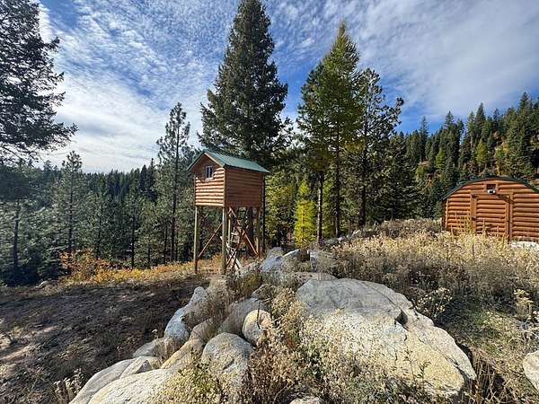 Secluded 67.2-acre backcountry hideaway, perfect for your dream hunting cabin. Tucked away in pristine wilderness, this off-grid property offers unparalleled peace and stunning 360-degree mountain vistas. The land borders a secluded piece of State of Idaho property ( over 1100 acres), ensuring enhanced privacy and exclusive access to prime hunting grounds teeming with Elk, Deer and Grouse. Features a cleared building site with room for expansion, accessible via improved dirt roads. Springs and Pond provide reliable water sources. Includes a two storage sheds and a flat, open space for your new Lodge site or camper parking. Ideal for hunters seeking a self-sufficient escape in a private, wildlife-rich setting. Hunters, Hunting guides and Backcountry dreamers this is the property for you. Easy to preview.