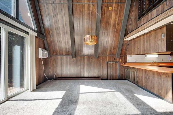 One-of-a-Kind A-Frame on 3 Acres in Monticello! Looking for something truly unique? This is it! This iconic A-frame home sits on 3 beautiful acres surrounded by trees and nature -- offering that "up north" vibe without leaving town. All main-level living with an open layout, full of character and potential. The upper loft adds extra living space or a fun additional bedroom overlooking the main level. Outside, you'll love the space and privacy -- plus a 3-car detached garage for all your toys and hobbies. Bring your ideas and make this architectural gem your own. Acreage living, tons of charm, and one seriously cool home!