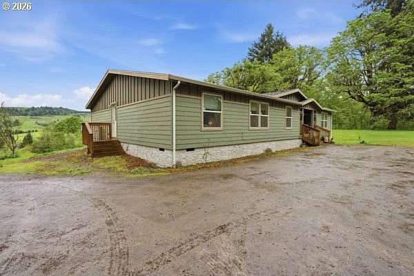 Enjoy peaceful country living with stunning valley views at this beautifully updated home just outside of Amity. Situated on 5.2 private acres, this spacious 2,924 sq ft manufactured home offers a versatile layout, incredible scenery, and room to truly spread out.Featuring 4 bedrooms and 3 full bathrooms, the thoughtfully designed floor plan provides ideal separation of space. Two bedrooms are connected by a shared living area and full bath-perfect for multi-generational living, guests, or a private suite setup. On the opposite side of the home, you'll find a generously sized primary retreat complete with a large en-suite bathroom. A fourth bedroom and additional full bath are located on the far end, offering even more flexibility and privacy.Take in breathtaking valley sunrises and sunsets from your own property, all while enjoying the quiet and seclusion of a country setting. Whether you're looking for space for animals, gardening, or simply room to relax and unwind, this property offers endless possibilities.Experience the best of rural Oregon living with convenient access to nearby amenities, wineries, and everything the Willamette Valley has to offer. Don't miss this opportunity to own a private retreat with incredible views and versatile living space-schedule your showing today!