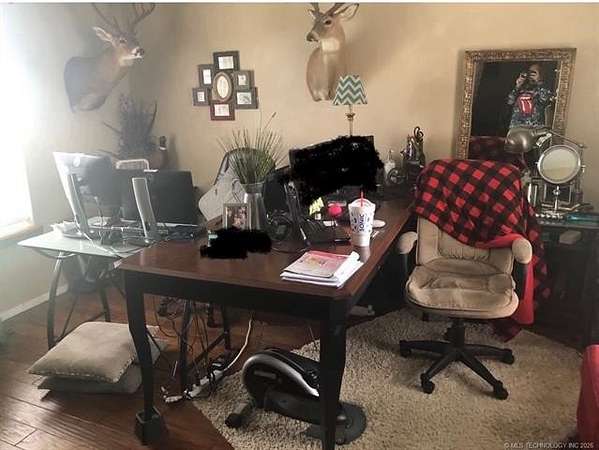 Est $2,608/moSmall Ranch for the Cowboy or Cowgirl that wants a Barn (40x45) and Arena! Property has 2 Ponds and 3 Security Lights plus Pipe Fencing. The home has an inground Safe Room and a large Patio with a Pool. There's an Office just off the Master Bedroom and there is a lot of storage this home including floored attic space. The house has a Home Generator. Located just south of Muskogee and in the Hilldale School District, but Oktaha is an option also. Come take a look you'll like it!!