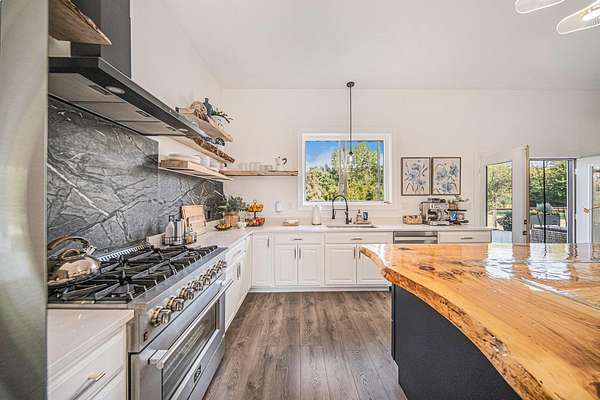 Welcome to a home where luxury meets lifestyle. This exceptional residence offers 3 spacious bedrooms and 2.5 designer bathrooms, combining timeless elegance with modern comfort. At the heart of the home lies a chef's dream kitchen, complete with a massive custom-built island, premium finishes, and a spacious butler's pantry with a second refrigerator, making it perfect for both entertaining and everyday living. The cathedral ceilings throughout create a bright, airy ambiance and enhance the home's grand, open feel. The primary suite is a true sanctuary, featuring a spa-inspired bathroom with floor-to-ceiling marble tile, delivering a sense of serene luxury. Car enthusiasts and hobbyists alike will appreciate the 3-car garage with extra-tall doors along with an RV power hook up, providing ample space for oversized vehicles, recreational toys, or a private workshop. Spend your mornings on the veranda enjoying the sunrise and evenings on the expansive deck watching the sunset. Ideal for entertaining friends and family with the outside custom kitchen, covered pergola and brand new vinyl awnings. Unwind in the private hot tub, complete with an outdoor shower, and experience resort-style living right in your own backyard. Every detail has been carefully curated, making this residence a rare opportunity to own a home that is as functional as it is breathtaking. Don't miss your chance to make this extraordinary home yours. Schedule a private showing today and experience the luxury for yourself!