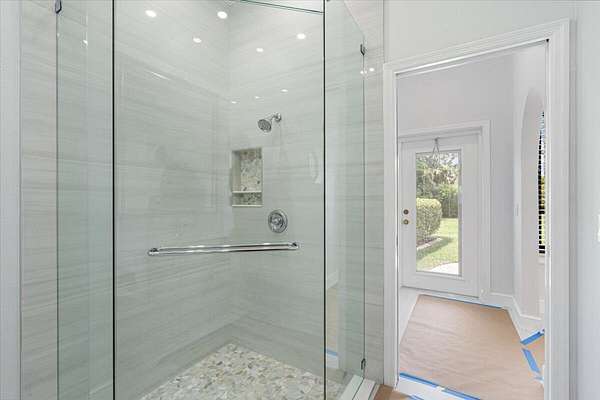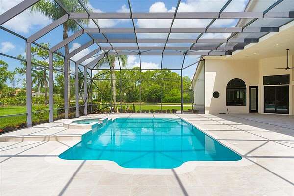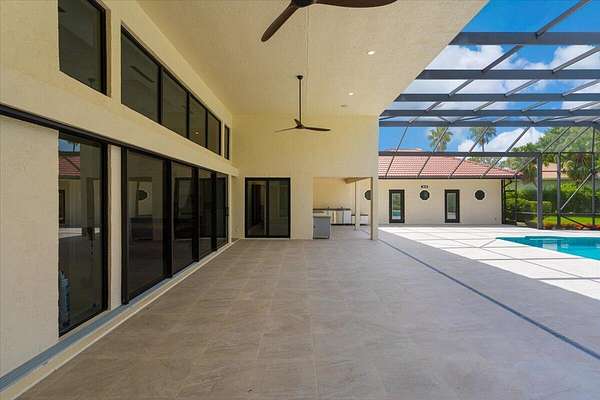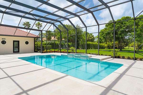 Exquisite Estate home with unrivaled quality finishes re-done to perfection! This home located in Manned gated community of PGA Village. With a total of 5 BR's, 4 BA's, Guest house, large screen enclosed pool & fabulous corner lot on 1.76 acres. Features CBS construction, Hurricane windows & doors, barrel tile roof (2018) plus 3 CG w/ tile flooring. Gorgeous porcelain floors, stunning featured wall w/ fireplace & TV soaring ceilings in spacious Great Room ideal for entertaining! Gourmet kitchen w/ LG Island, breakfast bar & storage, custom cabinetry, Jennair wall oven, Induction cooktop, pot filler, panel refrigerator, pantry, custom hood, kitchen nook dining with coffee bar right off laundry room. Grand Master suite with exceptional custom closet. Master Bath feels like a SPA!