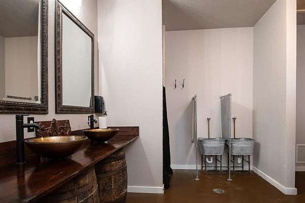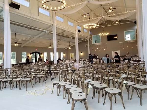 The property includes 4,000 square feet of covered patios, charming rear patio with an outdoor bar, and a fire pit, creating unforgettable experiences for guests. Inside, you'll find a caters kitchen, storage and supply rooms, bridal and groom suites with private bathrooms, a finished upstairs office, and two expansive spaces ready for future expansion.