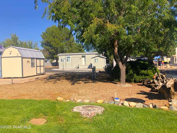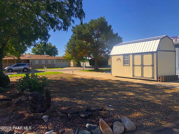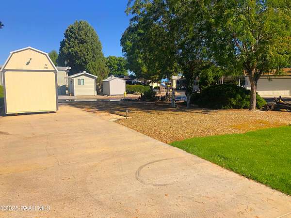 Amazing opportunity to own the Best Lot Available in the Villages at Lynx Creek! If location is everything in real estate this lot has it all being just a stones throw from the clubhouse and all the fun. This corner lot offers a rare convenient concrete pull through from front to back for your RV. Enjoy countless outdoor hours under tall shady trees while entertaining all your friends. You'll also love the natural grass at the front that is maintained by the association. The lot also has a nearly new shed/workshop that measures approximately +/- 16' X 8' with a full size fridge inside. The community like this lot is a gem and features so many great things to do like Pickleball, Tennis, heated swimming pool, spa, wood working, billiards, card room, craft room, community library, huge activity/ball room and a wonderful shady dog park for your furry friends. Come enjoy all this Active Community has to offer and forget about ever paying space rent again!