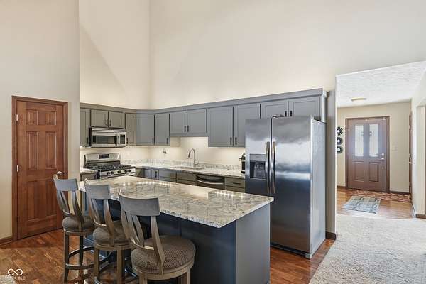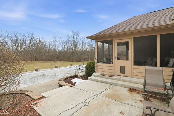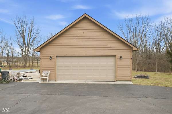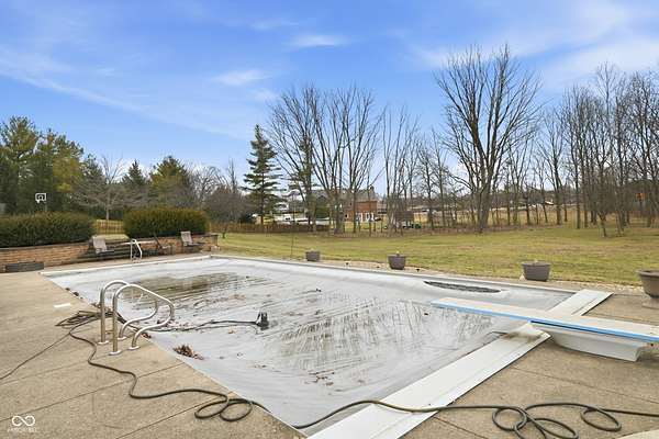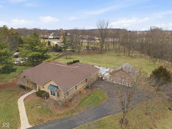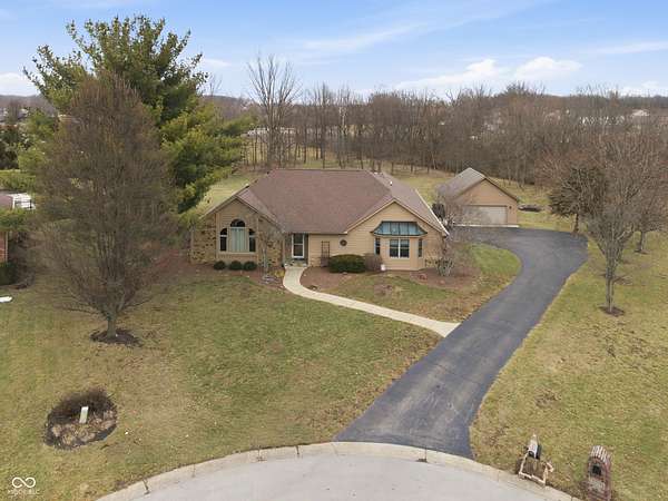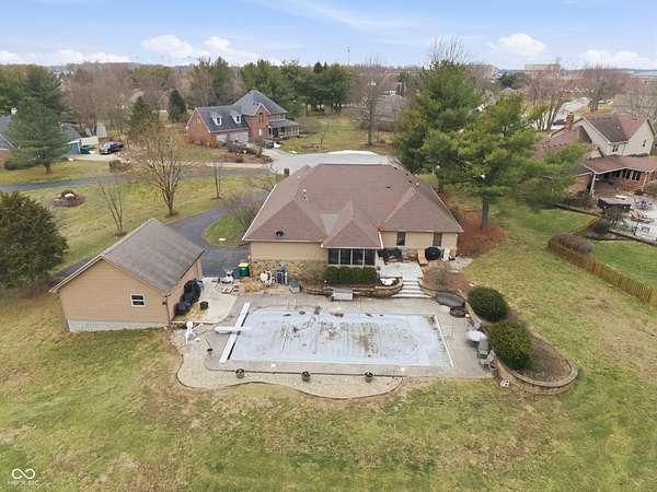 Rare opportunity: Custom-built ranch on 1.71 acres at the end of a cul-de-sac with No HOA. Pool, 2 Oversized garages, Tons of Yard Space, Remodeled Kitchen and Baths, and more. Major recent updates include a newly painted exterior, newer HVAC, and a new pool filter/pump, new detached 2 car garage. This 4-bedroom, 2-bath home features a renovated kitchen with granite countertops and a large island, plus updated bathrooms. Both living and family rooms feature tall vaulted ceilings; the family room includes a gas fireplace and built-ins while the living room has open access to the kitchen. The primary suite features a large walk-in closet and oversized walk-in shower. The backyard is built for recreation and hosting, centered around a 40x20 in-ground saltwater pool with a diving board and extra concrete decking added for lounging. The screened-in porch has been upgraded with a new concrete floor and is the perfect place to beat the heat. Parking and storage are extensive: an attached garage with extra-tall ceilings, a new 24x24 detached garage, long enough for most trucks, and two large storage sheds. The 1.71 acre lot includes approximately one acre of flat yard, wooded area and creek. Located near Avon HS. A unique property with this level of infrastructure is rarely available!