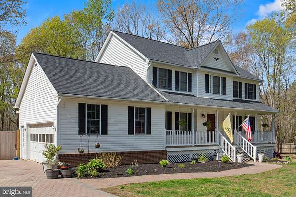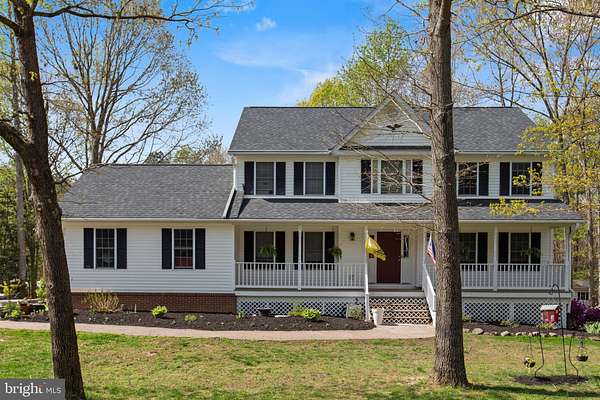 Well-maintained Colonial situated on nearly 2 private acres with extensive upgrades and thoughtful improvements throughout. The home offers 4 bedrooms and 3.5 bathrooms, including a fully finished walk-out basement featuring a separate living space complete with full kitchen, bedroom, bathroom, living room with gas fireplace, and access to an expansive patio. The main level includes a formal living room with gas fireplace, a spacious formal dining room, and an updated kitchen with granite countertops and stainless steel appliances. Formal dining room, breakfast room, large family room, and powder room. There is a country front porch and out back, just off the kitchen are french doors that take you out to the deck with a staircase down to your large (newly) fenced in yard. The upper level features a spacious primary suite with a large walk-in closet and renovated bathroom with double vanity and granite counters. Two additional bedrooms and a flexible fourth room suitable for an office or additional sleeping space share an updated hall bath with granite countertops, soaking tub, and separate shower. Major system upgrades include a new 50-year roof (2021), dual-fuel HVAC system using propane and outdoor wood furnace (2022), whole-home 24kW generator tied to a 500-gallon propane tank (2023), new hot water heater (2024), and new well pressure tank (2022). Water treatment system includes softener (2021), UV purifier (2022), and acid neutralizer (2024). Additional improvements include renovated bathrooms, new flooring in the kitchen, upgraded LED lighting, new ceiling fans with remote controls, new gutters and gutter guards (2021), privacy fence (2024), new sod (2025), arborvitae privacy hedge plantings, and a freshly leveled and sealed custom brick driveway (2025). All refrigerators in the main kitchen, basement kitchen, and garage convey. Wall-mounted televisions convey.