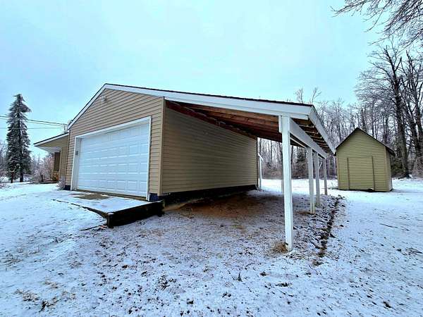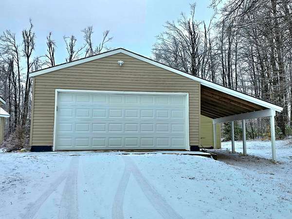 ALL OFFERS DUE BY APRIL 1ST AT 10AM. VALUE ADD OPPORTUNITY! Charming, updated, and full of potential--this 2-bedroom, 1-bath ranch offers incredible value on 1.5 peaceful acres! With many renovations already completed, this home is perfect for buyers looking for comfort now with room to make it their own. Priced accordingly and sold ''as is,'' it's a great opportunity to build equity quickly. Step inside to find a refreshed interior featuring vinyl laminate and wood plank flooring throughout the living room and kitchen, along with beautifully refinished kitchen cabinets accented by new hardware. Recent upgrades also include a newer roof, added attic insulation for efficiency, updated back door, and included washer and dryer--making this home move-in ready with major improve already done. Outside, enjoy the space and versatility of a 20' x 20' detached 2-car garage complete with two lean-tos for extra storage, plus a 12' x 10' shed. Whether you're relaxing by the firepit, enjoying the surrounding nature, or taking advantage of the ample outdoor space, this property offers a peaceful lifestyle with room to grow. Riding lawnmower and snowblower are included with the house. Don't miss your chance to own an affordable home with land, updates, and endless potential! Call for your private showing today!