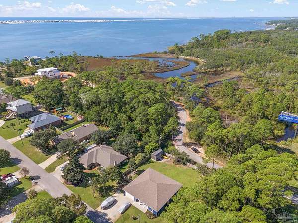 ALL UPLANDS Recent Wetland Study under documents. This .47-acre lot, located south of Highway 98 in Navarre, offers unobstructed views of natural wetlands and the Santa Rosa Sound. The property is conveniently located to schools, restaurants, shopping, and is just two miles from the Navarre Beach Bridge. According to tax records, a portion of the lot falls within flood zones AE-10 and AE-11, requiring flood insurance. Attached documents provide information on water availability and the proposed extension of the low-pressure sewer system. For tap fee details, contact Holley-Navarre Water & Sewer.