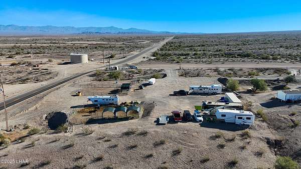 Your Desert Oasis Awaits - Nearly 2 Acres with Full RV Hookups! The views and sunsets don't get better than this private slice of paradise! Nestled on nearly 2 acres with BLM land on two sides, this property is the perfect full-time retreat or weekend RV getaway. Enjoy graded RV pads with full hook-ups for 3 RVs (water, power, and septic), plus space for friends, toys, and future plans. A plumbed shipping container offers a full-size washer & dryer, utility sink, and secure storage for your off-road gear. Whether you're dreaming of a barndominium, horse setup, garage/shop, or custom home-this land is ready to go. Located just minutes from Lake Havasu for boating, shopping, and year-round events. Don't miss this rare opportunity! There is also a fifth wheel on-site for sale-ask for details.