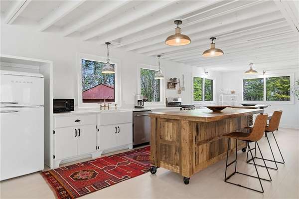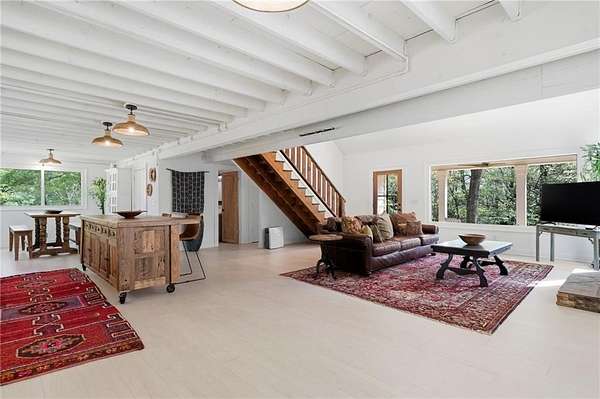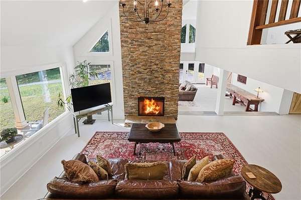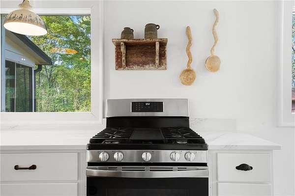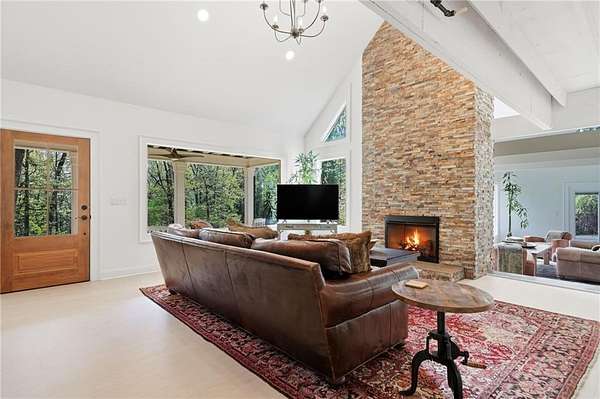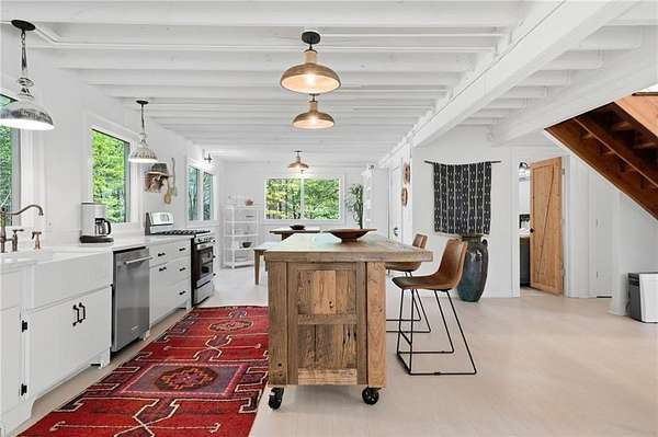 Welcome to this stunning, renovated farmhouse style home on 2 acres in Woodstock, 793 Cardinal Cove, just steps from historic Mountain Park and Lake Cherful. Offering the perfect blend of modern updates, privacy, and a great location, this 4 bedroom, 2 full bath home is truly one of a kind. Completely gut renovated, this move-in ready home features stunning, open living spaces, stylish modern farmhouse finishes, a Primary or Master on Main, updated systems, and thoughtful design throughout. The spacious layout offers flexibility for families, remote work, or hosting guests, while the peaceful wooded setting across the street from Lake Cherful creates a true retreat feel just minutes from shopping, dining, and downtown Woodstock and Roswell. There is a large detached outbuilding with a concrete floor, perfect for storage or ready to become a workshop, home office, gym, she shed, man cave, art studio, or future guest suite conversion. Enjoy the freedom of no HOA, room for RV or boat parking, and the added benefit of low Cherokee County taxes. This property also has a proven track record as a successful furnished corporate rental and Airbnb, making it ideal for both homeowners or investors. If you've been searching for a modern farmhouse on acreage in Woodstock with no HOA, this is the one. Call for a private showing today!